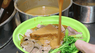 甜口的花生酱和咸口的芝麻酱混合一体,还有其他佐料加入的香味,再加上几个炸串,一口下去大满足。