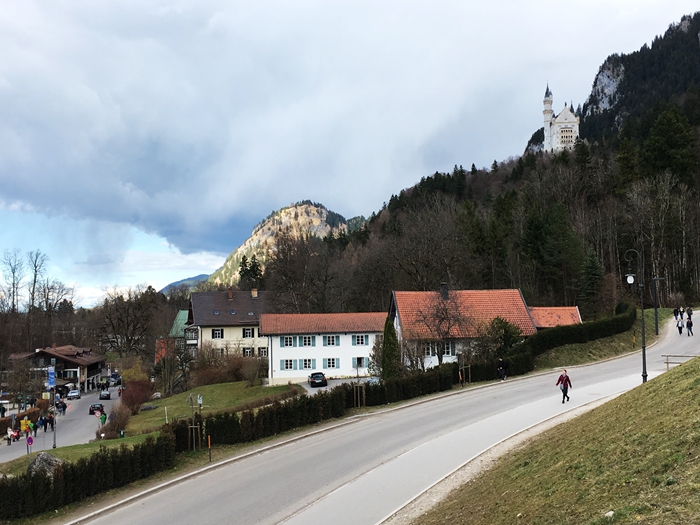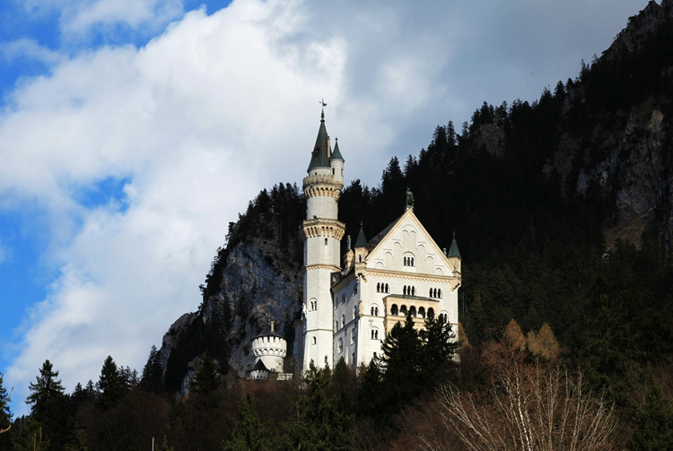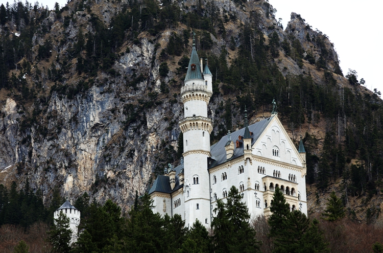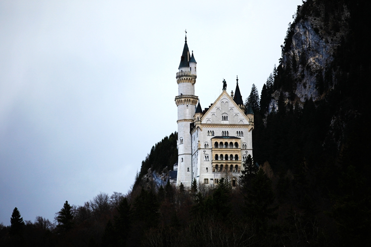 德国行程上是有富森小镇的,可惜因时间关系,导游砍掉了这个点,直接去了新天鹅堡。汽车到达时,导游给的时间很短,我们只能在山下远眺新天鹅堡了。这是一座乳白色的城堡,她孤零零的矗立在山巅,有着遗世独立的味道。这是根据德国国王路德维希二世的梦想所设计并用17年时间打造的,有一百多年的历史。
