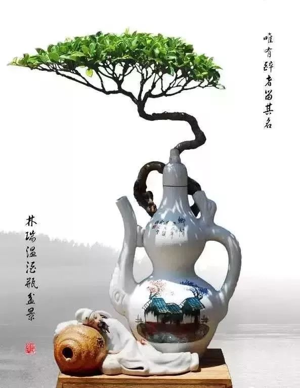 今天要给大家介绍的这位老人却尤其喜欢用空酒瓶做花盆,他就是林瑞温老先生,他退休前是一位教书育人的老师,从教多年获得无数家长、同事好评,特别受人尊敬,退休后由于对中国文化与盆景的喜爱,他将家里废弃的酒瓶改造成了让人惊艳的盆景艺术品,被誉为中国酒瓶盆景艺术第一人,下面我们就一起看看他的部分作品吧。