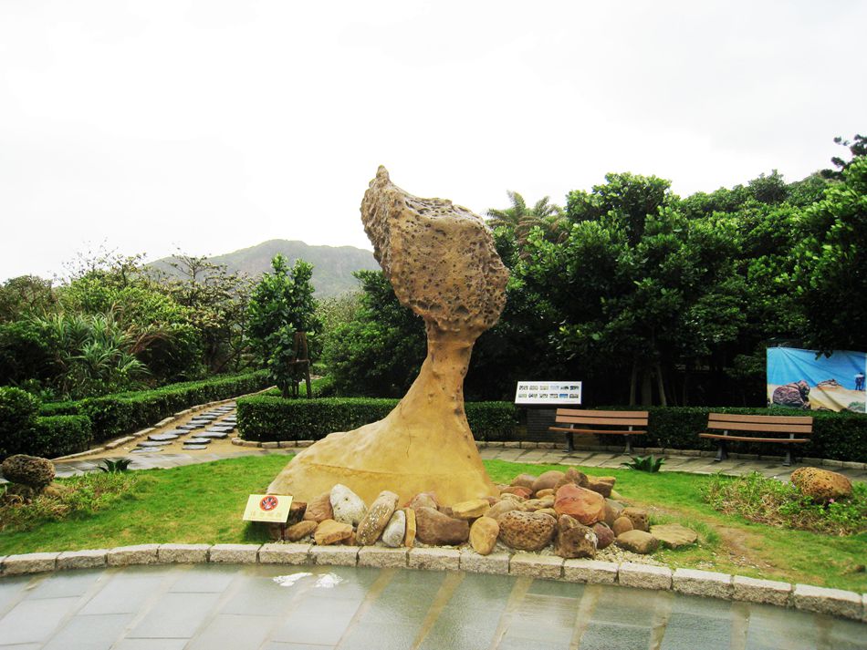 汽车载着我们来到台湾基隆野柳风景区。野柳位于基隆市15公里处,是突出北海岸的狭长海岬。下了车,先去放影室看了场专题片,介绍野柳的地景地貌。不看不知道,看了甚为奇特,这些奇石鬼斧神工,非人力所能制造,是大自然的恩赐与杰作。随着镜头的展示,野柳海岸在千百万年的侵蚀、风化的交互作用下,逐渐形成蕈状岩、烛台石、姜石、壶穴、棋磐石、海蚀洞等地质奇观。让全长1700公尺的海岬,成为台湾最富盛名的地质公园。