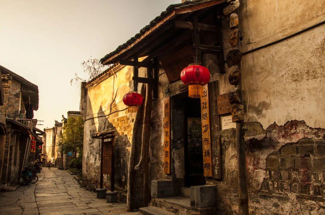 青瓦白墙、木雕大门、黑底鎏金的招牌、被岁月磨得光亮的石板路。