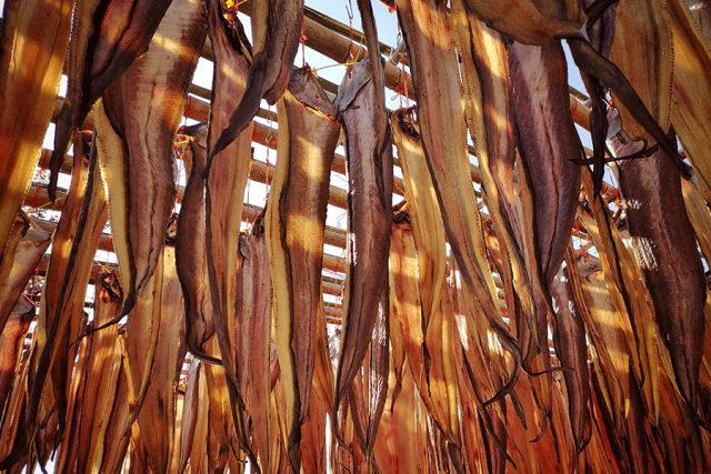 等到一条条银白玉亮的鳗鱼经过海风风干,鱼肉从白嫩转而成金色,就会随风微微晃动。