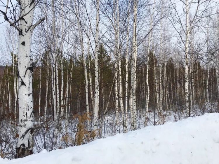 路两侧的树木,有白杨,但更多的是白桦,已脱去了金秋的盛妆,一袭白衣,素面朝天,或成排,或成片,萧瑟于寒风中,做着期待春天的梦。