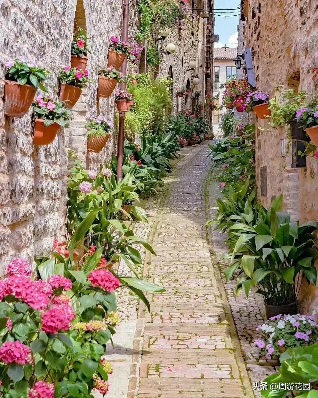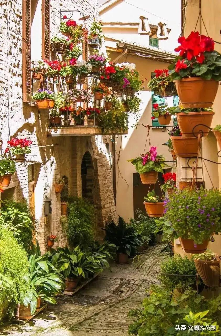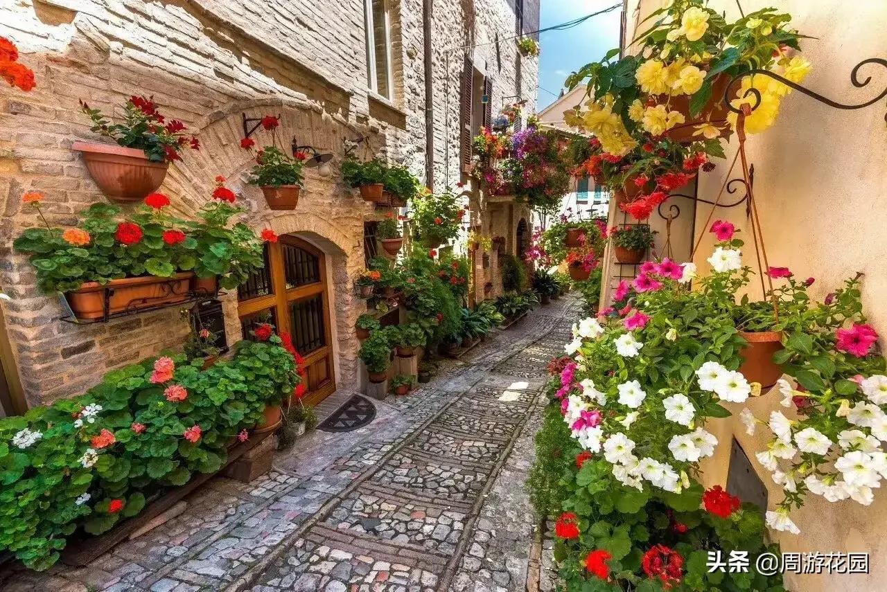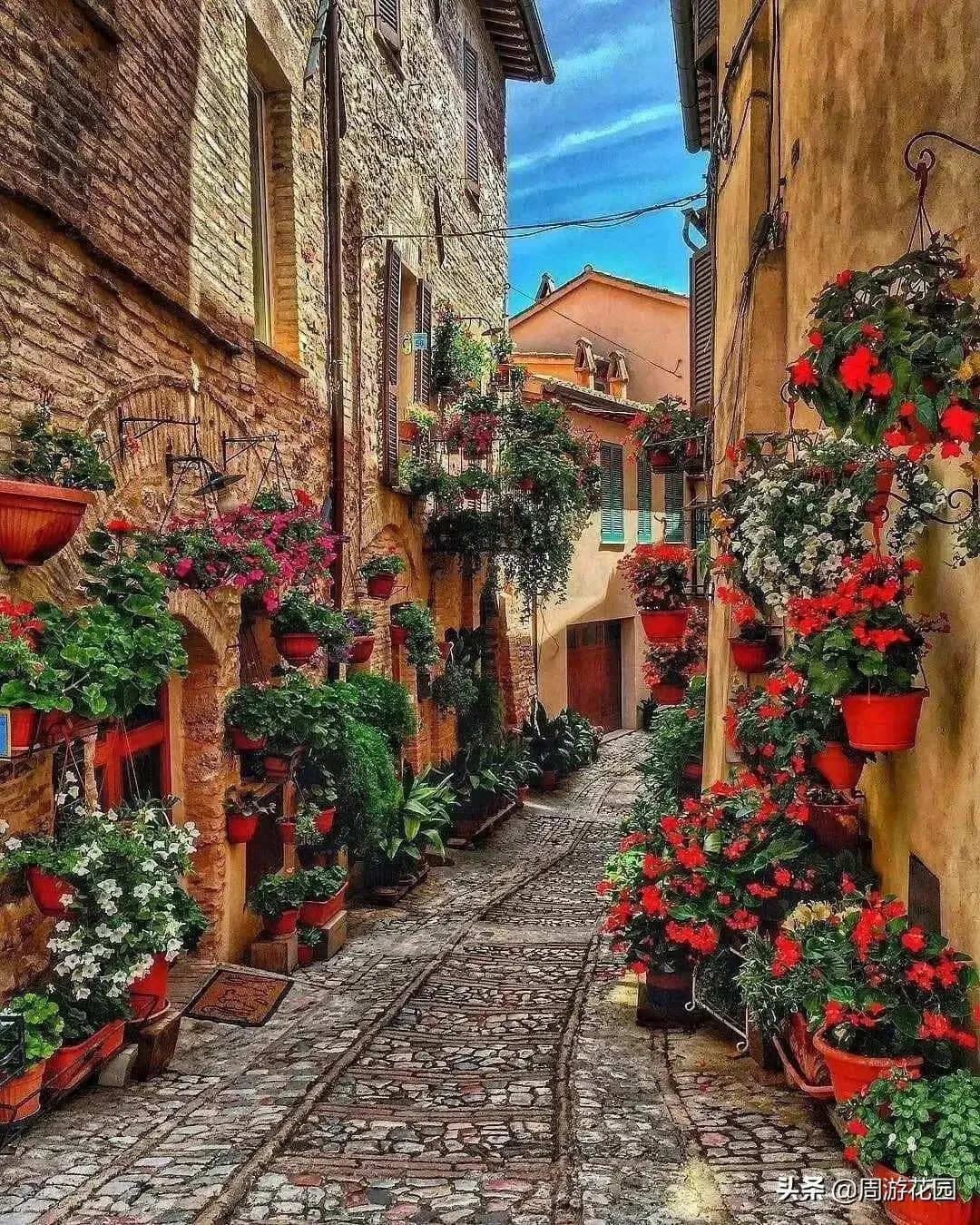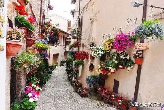 意大利斯佩罗小镇,偶然一瞥,会被这满城的灿烂鲜花迷住。