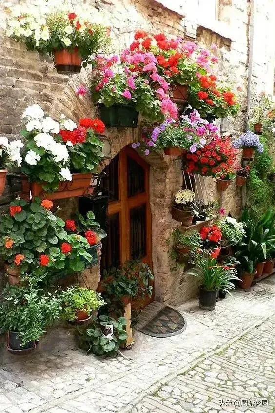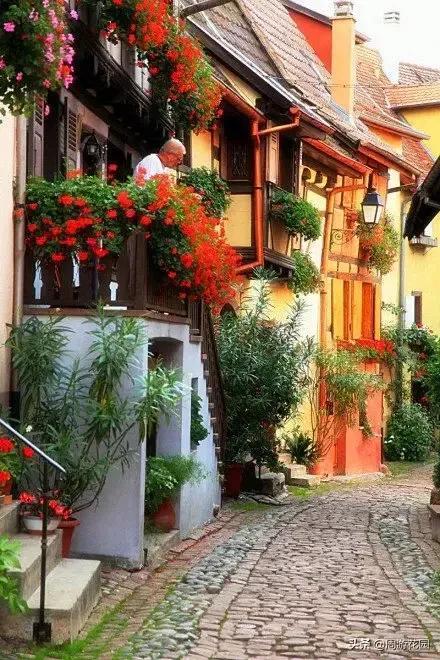 这里的每一块石头都仿佛保存着一段中世纪的故事 这里每户人家都超级爱鲜花,他们用鲜花、盆栽 绿植,把窗户和门外装饰好。走在街道上像走在花园里。