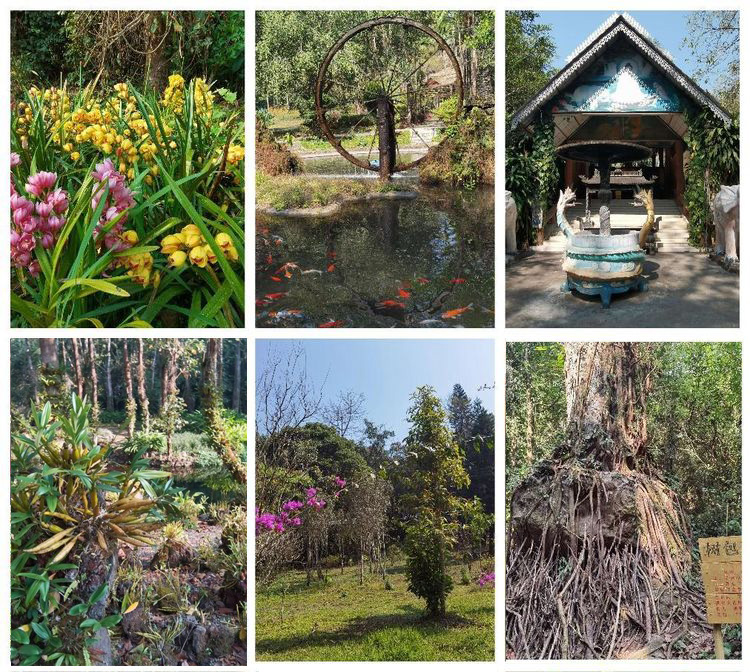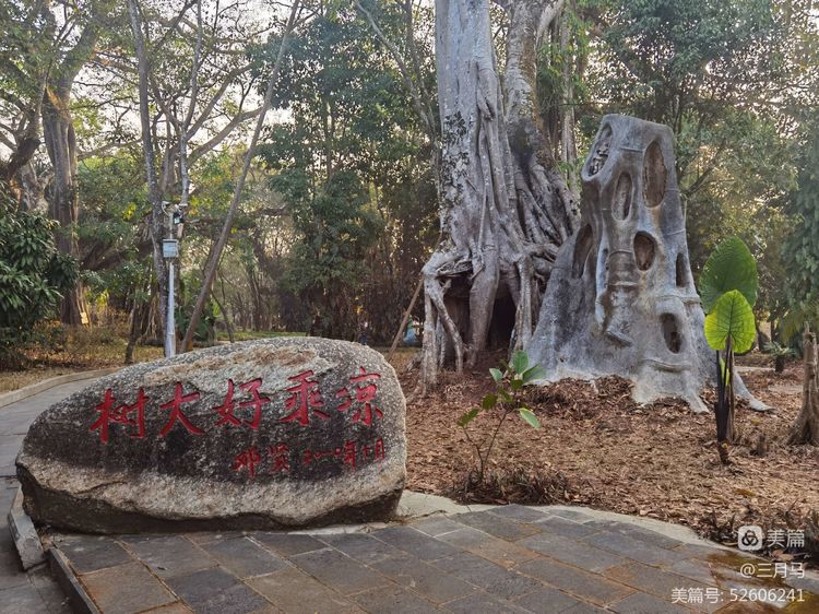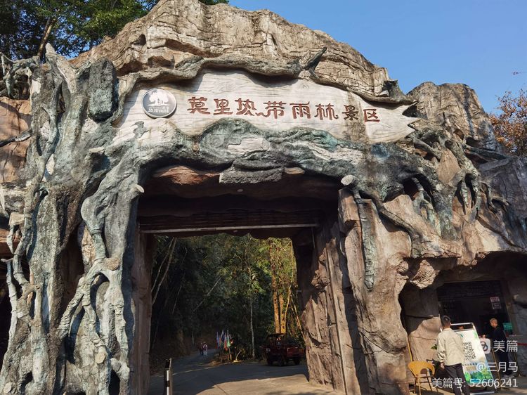 一进入这个景区,远远就能望见一片茂密的榕树林,走近一看却只有一棵,这株成林独树,是树龄在200年以上的大叶榕。这是一棵古榕树,有900多年的树龄,共有34个根立于地面,树高50多米,树幅面积2000多平方米,成为热带雨林中的一大奇观。