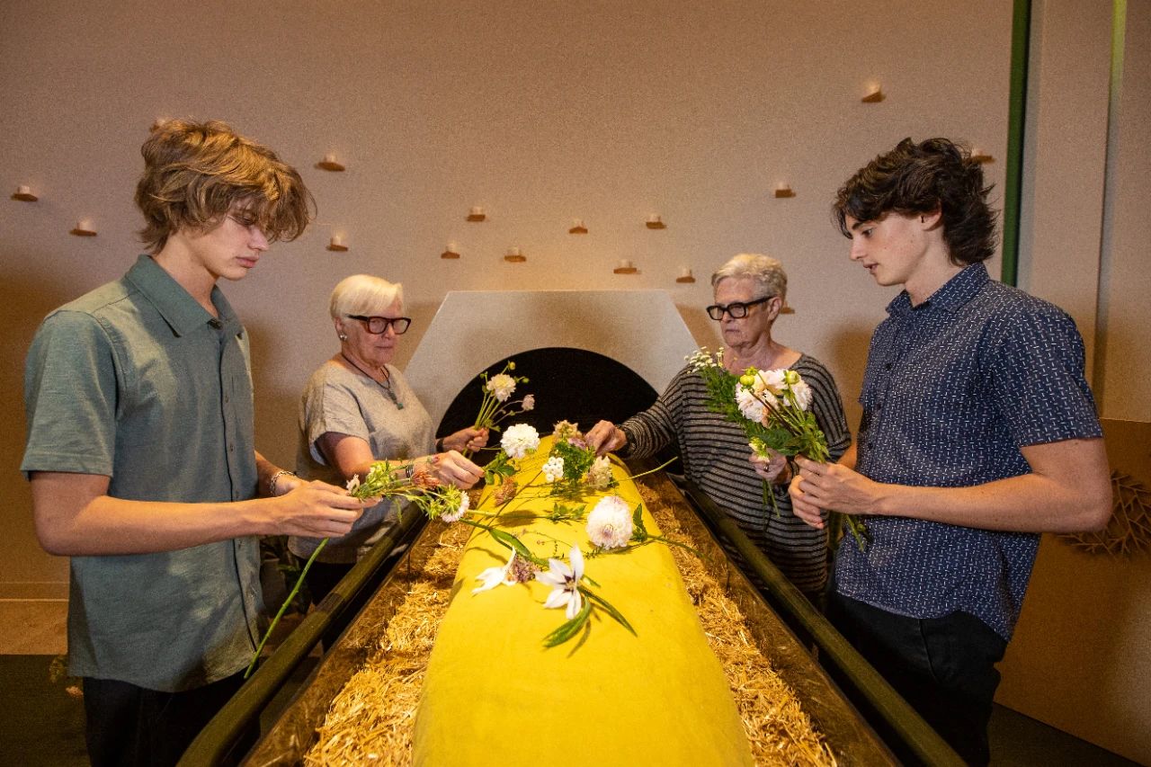 创始人Katrina说,“我很喜欢这样的时刻,亲友们一起把木屑稻草洒在遗体上,然后放上鲜花,有时,人们会放几张有特殊意义的书页,这些将和遗体一起变成泥土。”