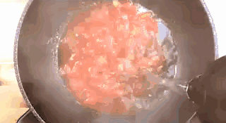 3、西红柿汤冒泡后倒入热水,大火,放入疙瘩,用铲子把疙瘩搅散,加入适量盐。