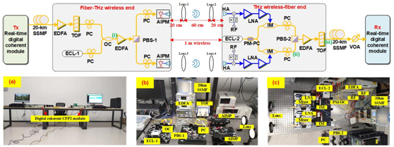 位于江苏南京的网络通信与安全紫金山实验室联合东南大学、鹏城实验室、复旦大学和中国移动等团队,首创光子太赫兹光纤一体融合的实时传输架构,搭建出首个360-430GHz太赫兹100/200Gbps实时无线传输通信实验系统,首次实现单波长净速率为103.125Gbps、双波长净速率为206.25Gbps的太赫兹实时无线传输,通信速率较5G提升10-20倍,打破了太赫兹通信系统实时传输净速率超过100Gbps的公开报道世界纪录。