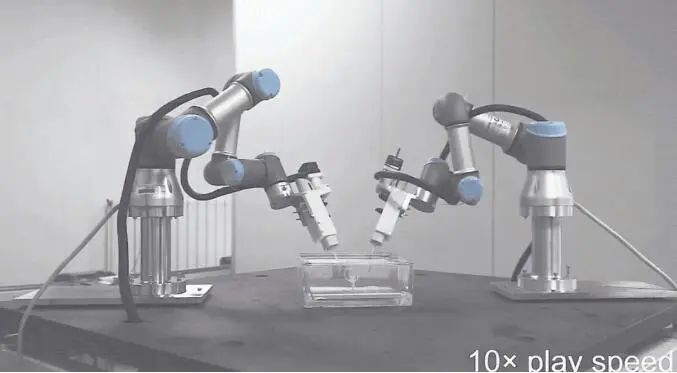 来自中科院等机构的研究人员利用六轴机器人改造而成的新型生物打印机和特殊的细胞打印方法,在复杂血管支架上打印出了具有正常细胞周期和功能的心肌组织。与传统的打印机相比,这种机器人打印机还不会对细胞造成机械损伤。