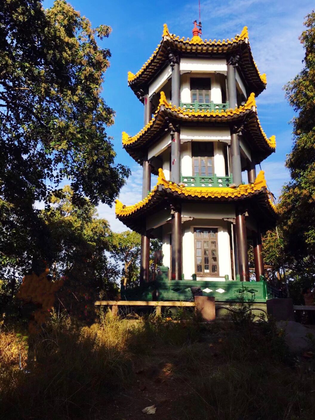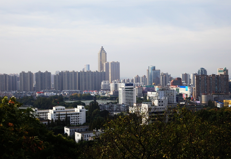芜湖赭山风景区在我们酒店对面,大清早我们去爬赭山。走进赭山公园,里面很安静也很大,有晨练的人匆匆走过。这天蓝天白云,正是秋高气爽的季节,山上还有枫树,银杏树。金黄的叶片在阳光下闪闪发亮。公园里有山有水,还有粉墙黛瓦,甚是清幽。迤逦而行就到了赭山塔(广济塔)。这塔高五层,建于北宋年间,很是古老。爬上塔,登高远眺,长江,城市风貌尽收眼底。塔里外墙镶嵌着许多刻工精致、形象生动的佛像砖雕。