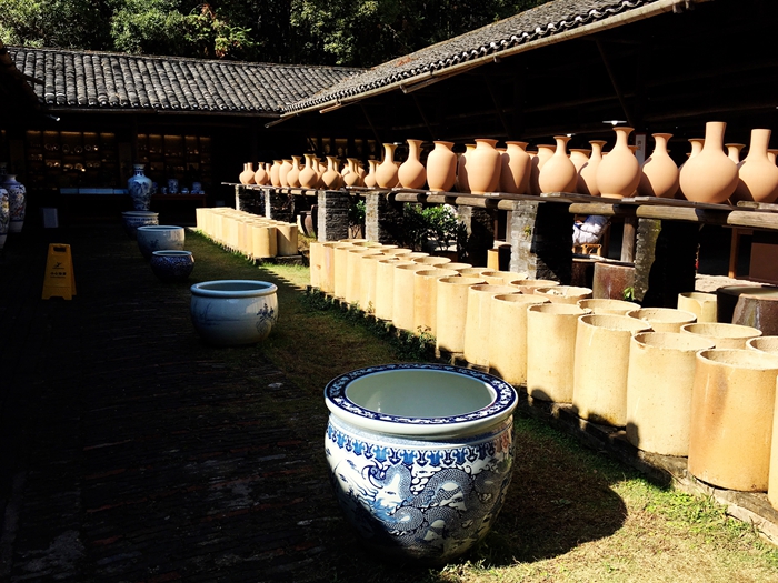 来景德鎮,不看陶瓷可不行。要想寻觅陶瓷的前世今生,一定要来古窑博览区。清晨,我们走进古窑景区,去造访宋、元、明、清四个朝代的古窑。景区很大,鸟语花香,微风习习,难得的好天气。一路行来,前方有一道墙,上书:“北看故宫,南访古窑”几个醒目大字。在中国堪比故宫的地方不多,可见这座古窑非同一般了。对既将看到的古窑,我的心里充满着期待。