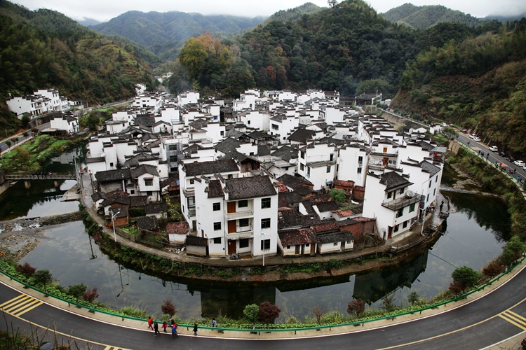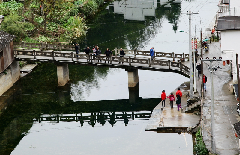 菊径村被誉为中国最圆的村庄,犹如世外桃源。这个村子在平地看,与婺源其他村子没什么两样,一样的青砖墨瓦,一样的石板路。可是当你登高眺望,却吓了一跳,这是一个圆溜溜的村子,一条小溪圆圆的地环绕整个村庄,小溪与公路连接是一座座小木桥,当地人称脸盆村。这是我看过的婺源最具特色的村子,当出租车驶过该地段时,我问司机能否停车让我拍张照片?司机还是我们来时的司机,他不仅同意了,还让我去观景台观全景。20元买了张票登上观景台咔嚓了几张全景图片。(2023.3.21日)