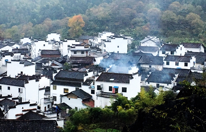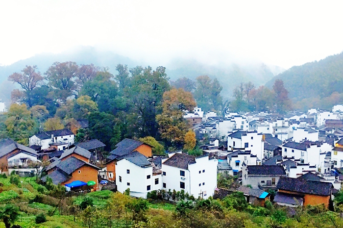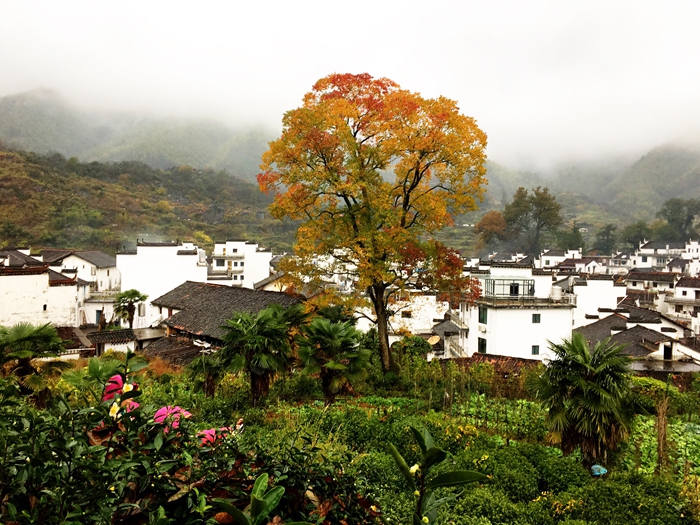 石城的美在于晨雾,粉墙黛瓦,日出、枫叶,交相辉映,梦幻迷离。千年来一回,却没有看见仙境,算是运气不佳吧,我们绕着山头游览,从不同角度观赏拍了一些片,虽说乌蒙蒙不好看,也算是来石城的纪念吧。有时候,世上的事就是这样,天不遂愿,总会留点遗憾,再美的景,遇不见也枉然。虽说石城有点不尽兴,但回程中偶遇菊径村算是意外惊喜了。