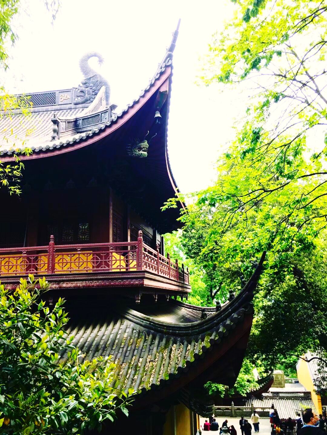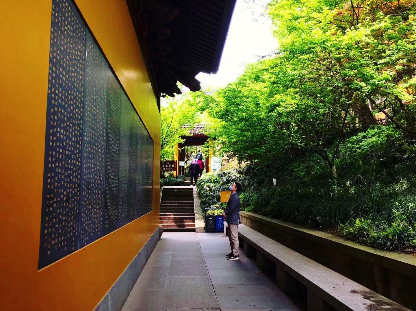 不知不觉中已下午三时半,还要赶回程的车,急忙离开花海赶往水南村。当行到村头,忽闻钟声,寻声望去,树丛中,一座寺院露出一角。暮色中,红色的寺院缥缥缈缈略显神秘。我不知古村中还有寺院,做攻略时也没见有介绍,为解心中困惑,遂决定一探究竟。这里非常安静,刚下过雨的路全是泥浆。但是,四周古木参天,草木茂盛。越往前行,越感觉有“曲径通幽处,禅房花木深。”的意味。