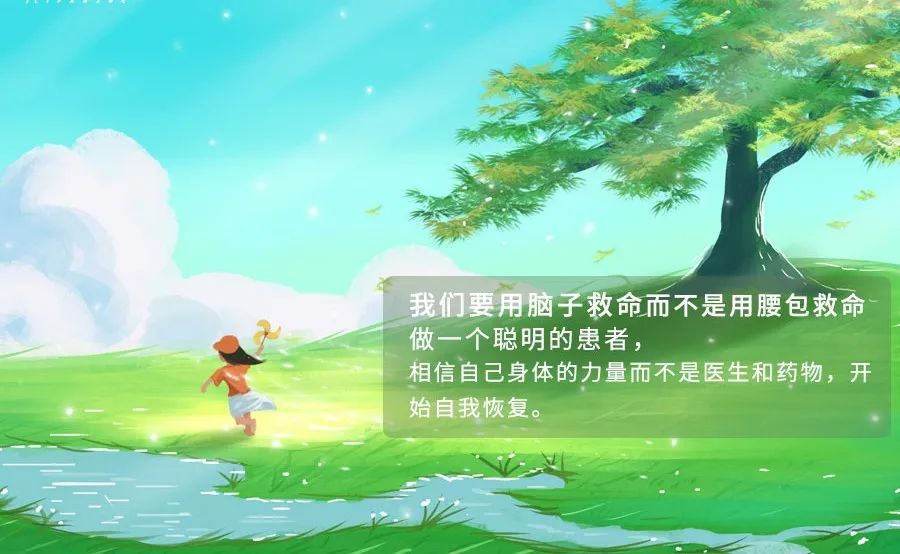 他决定做一个聪明的患者,相信自己身体的力量而不是医生和药物,开始自我恢复。