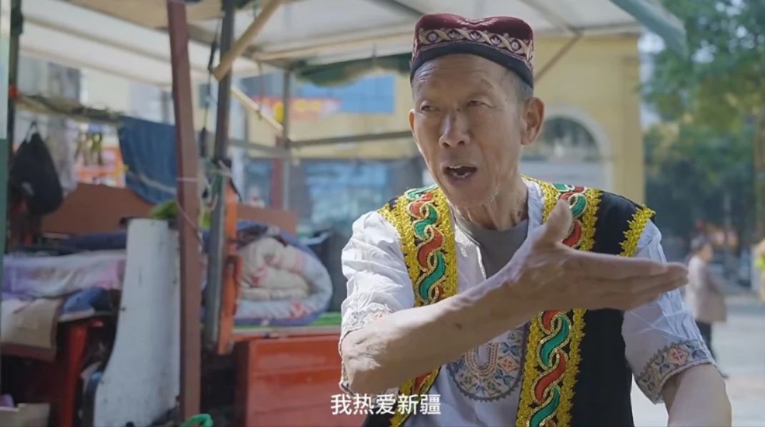 这个头带新疆小花帽穿着朴素的就是张大爷,张大爷1962年便来到了新疆,此后便一直工作生活在新疆生产建设兵团第七师。
