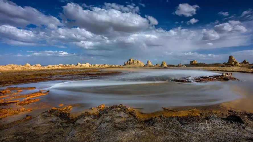 租乘小车往网红景点“恶魔之眼”-艾肯泉、茫崖翡翠湖-更小众的“天空之镜”。