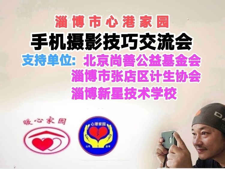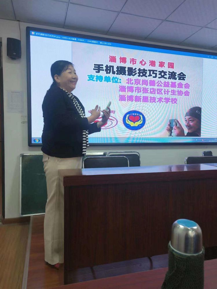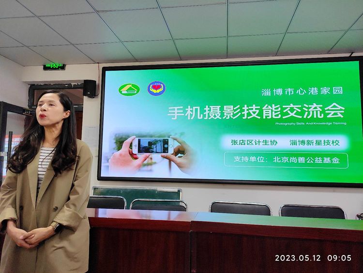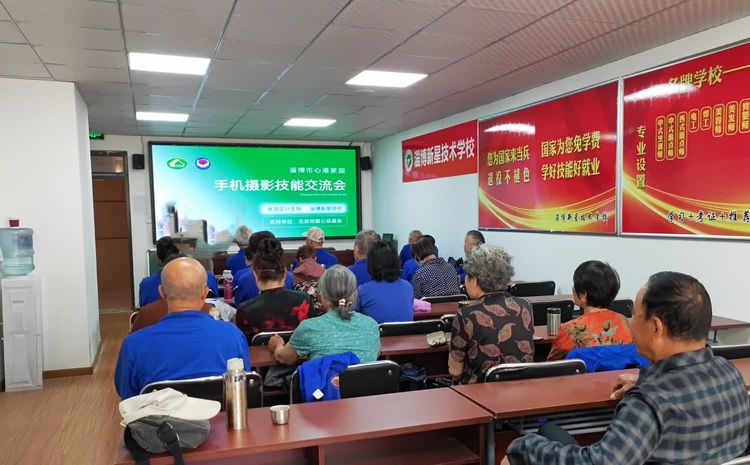 淄博市心港家园手机摄影技巧交流会于2023年5月12日上午八点半在淄博新星技术学校多媒体教室举办。