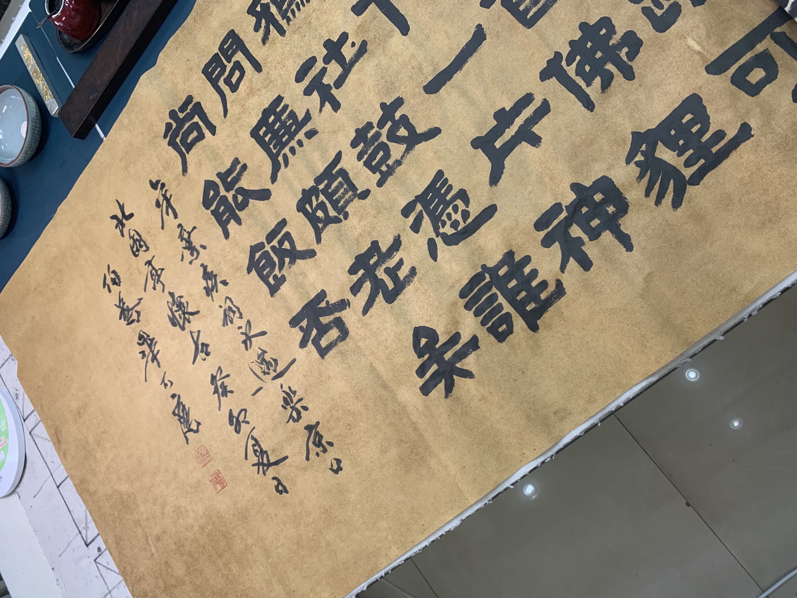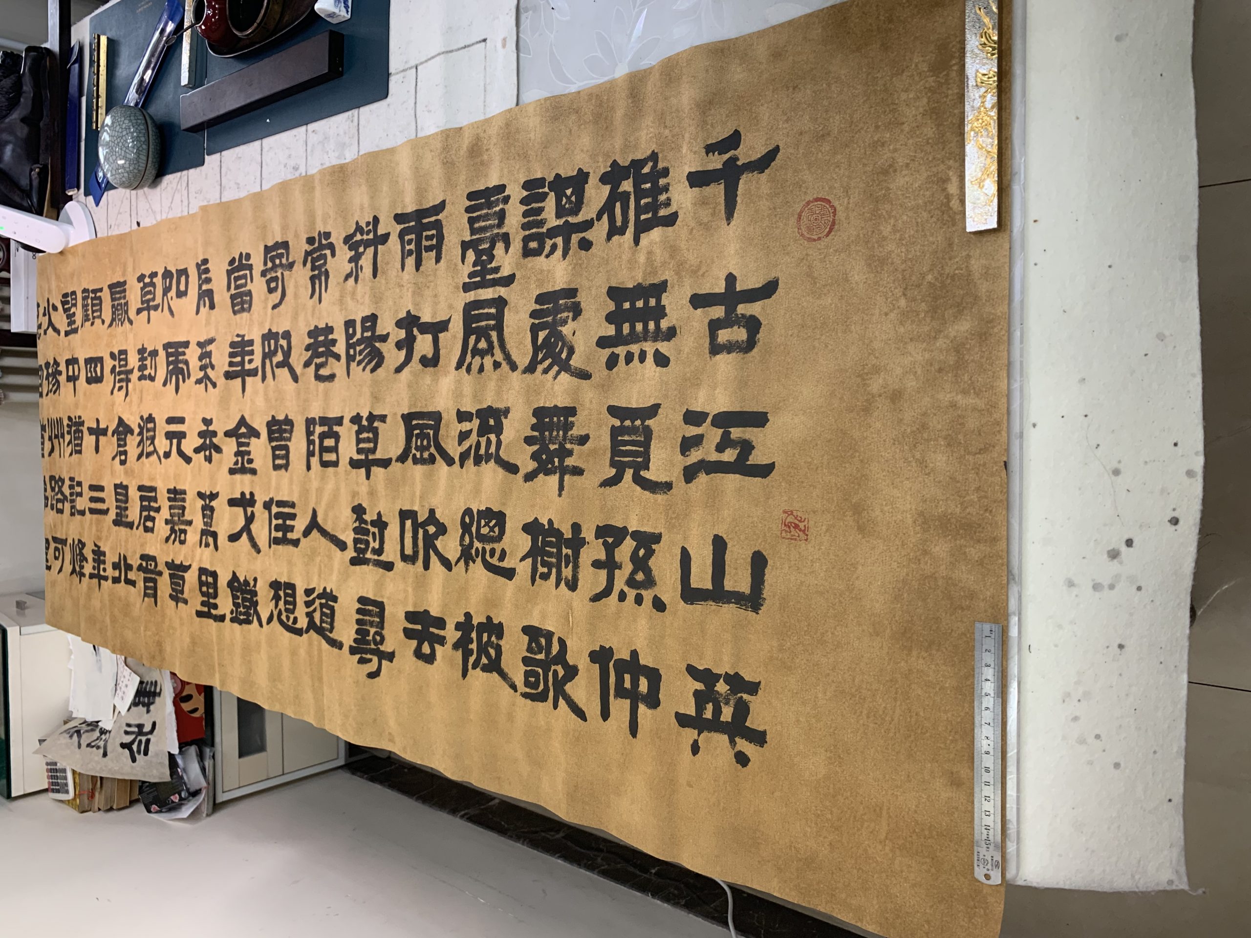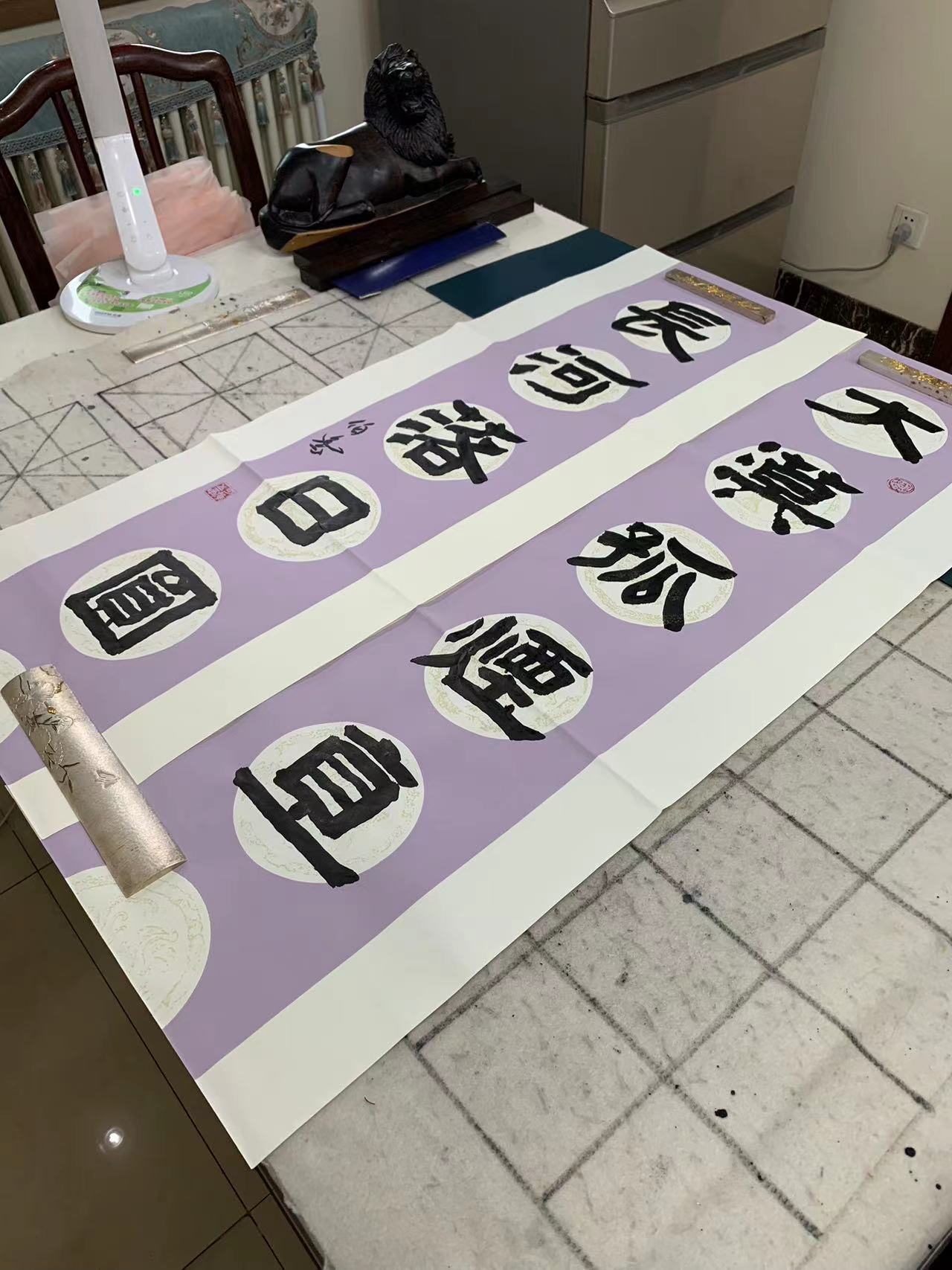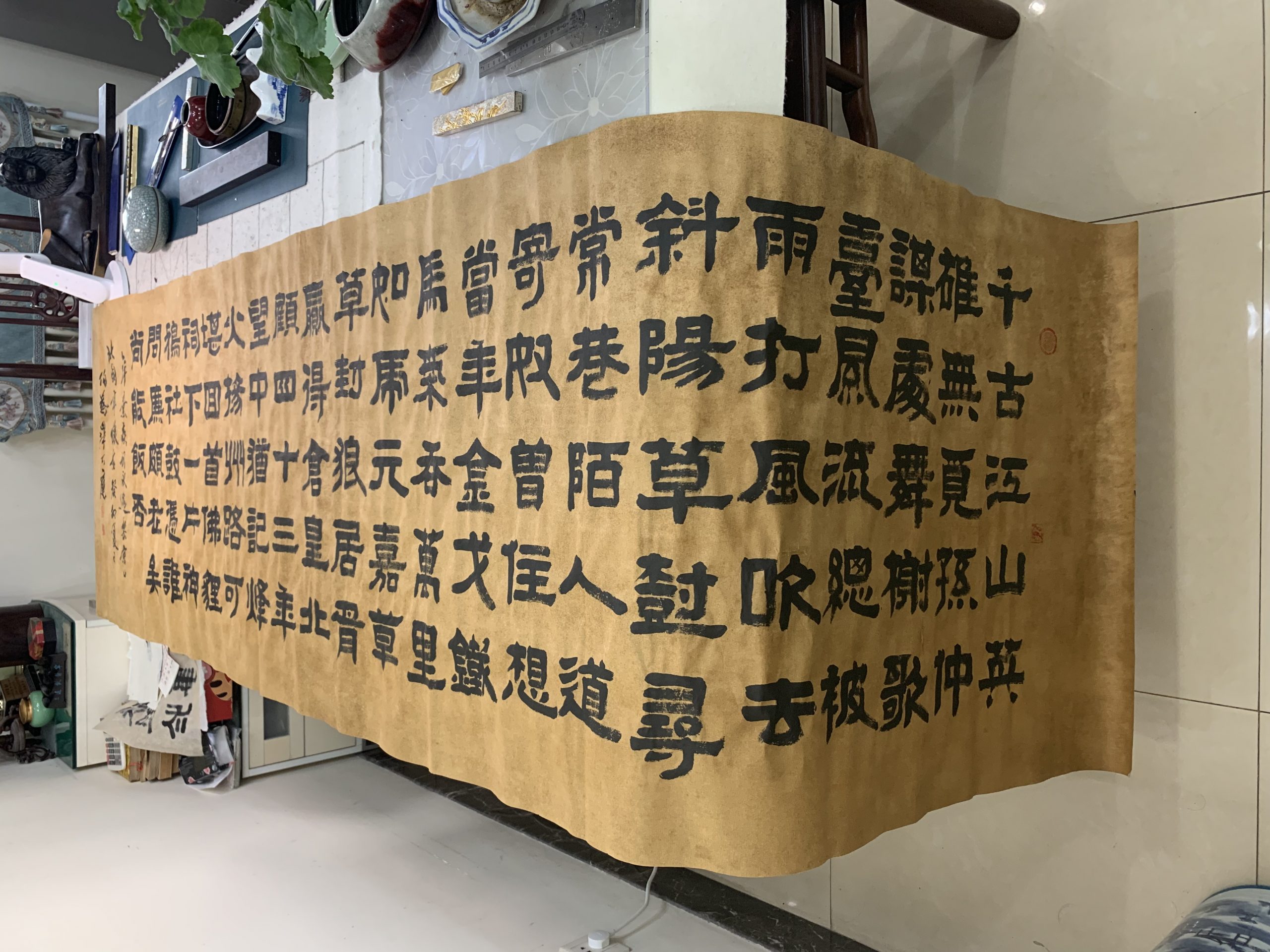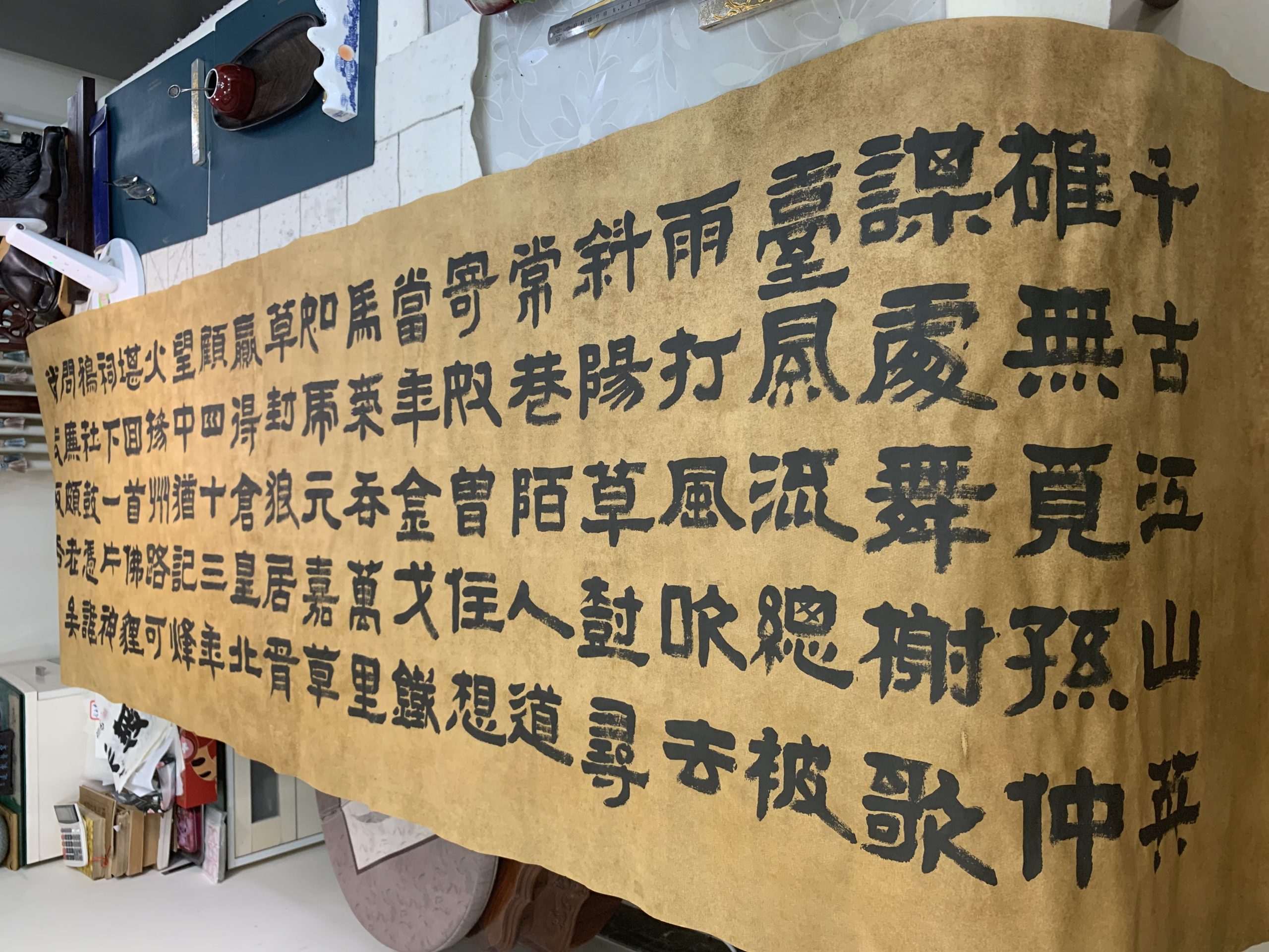 用了四天的功夫,完成古隶书长横幅,纵68厘米,横248厘米。