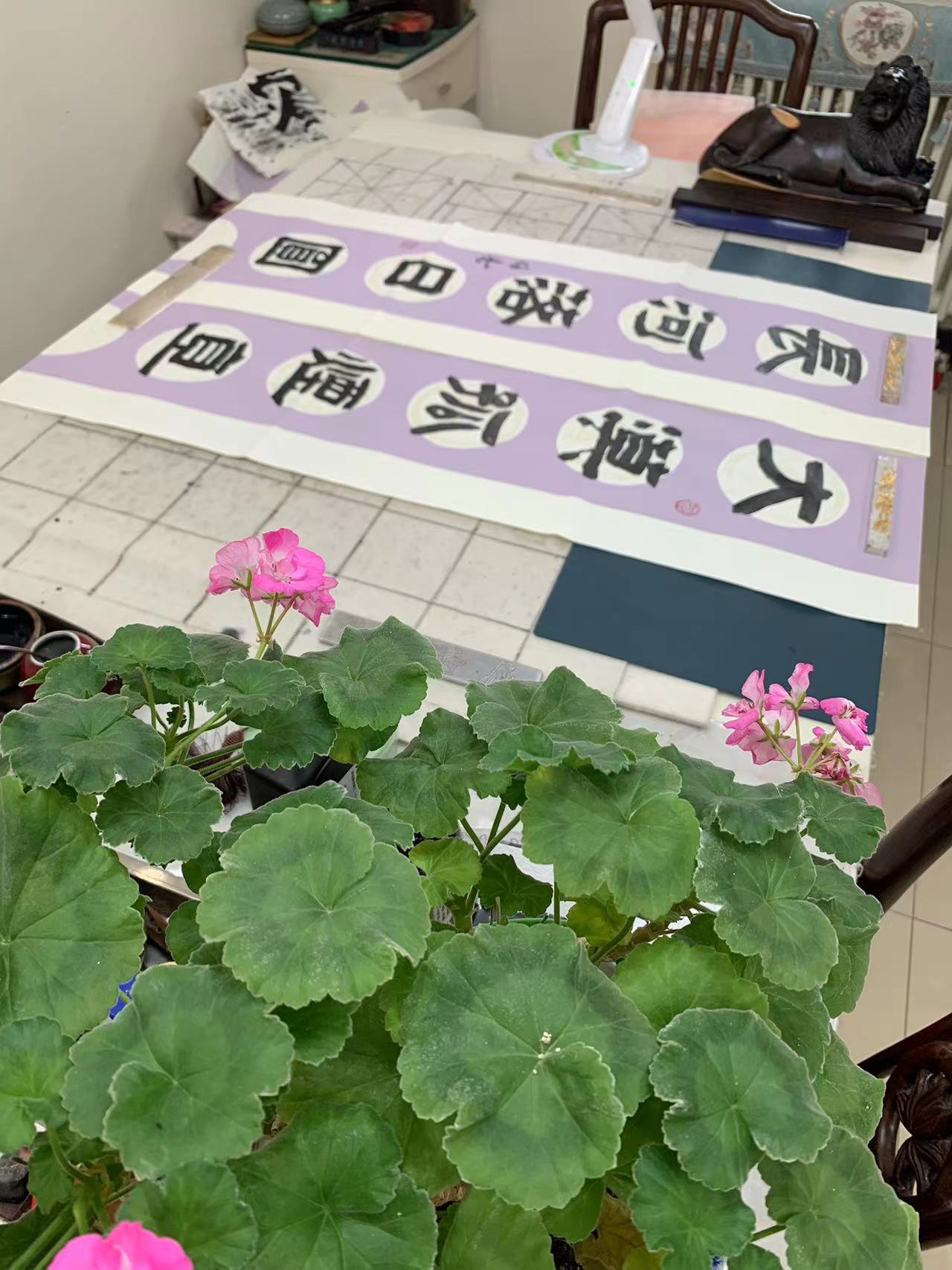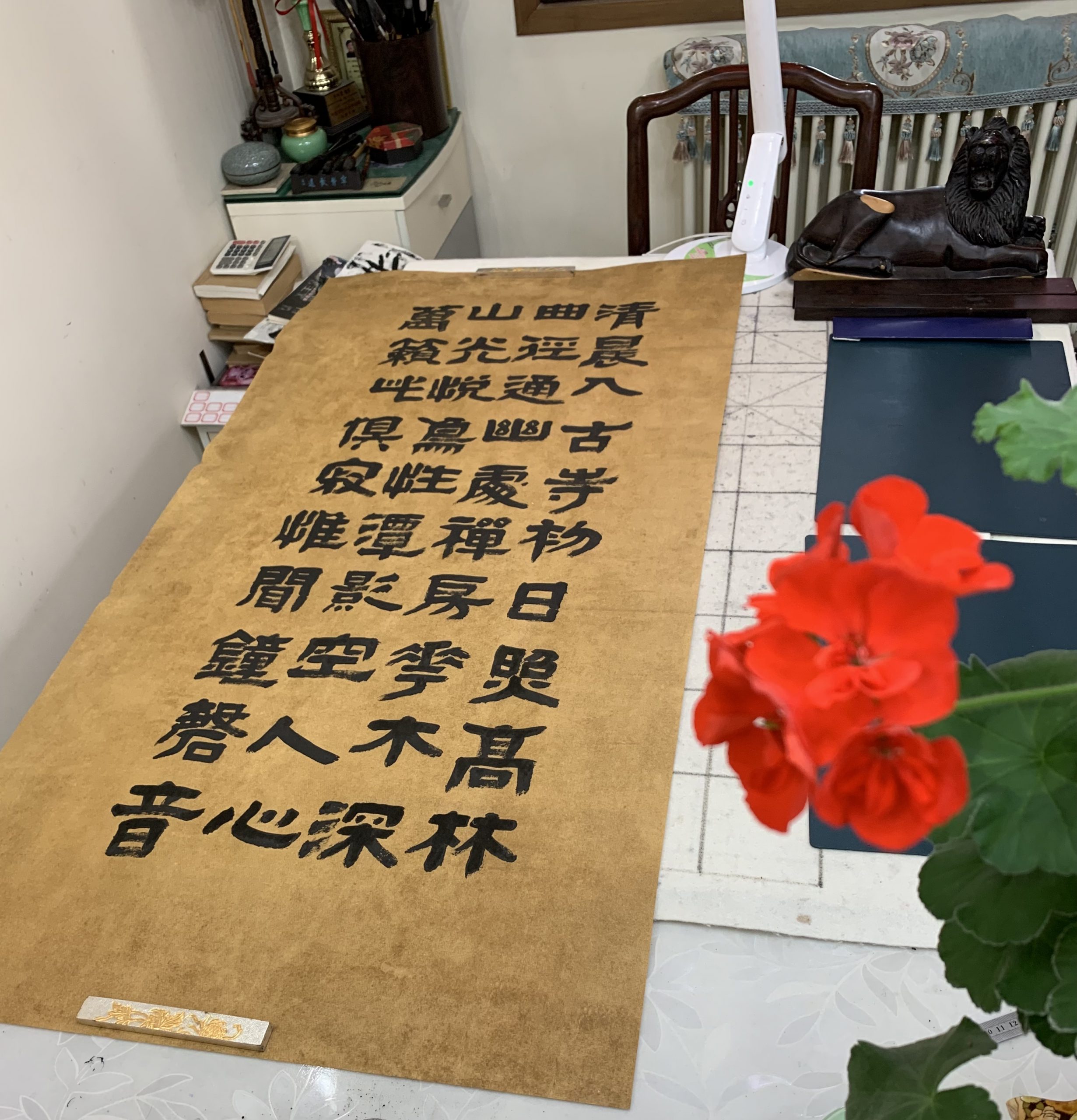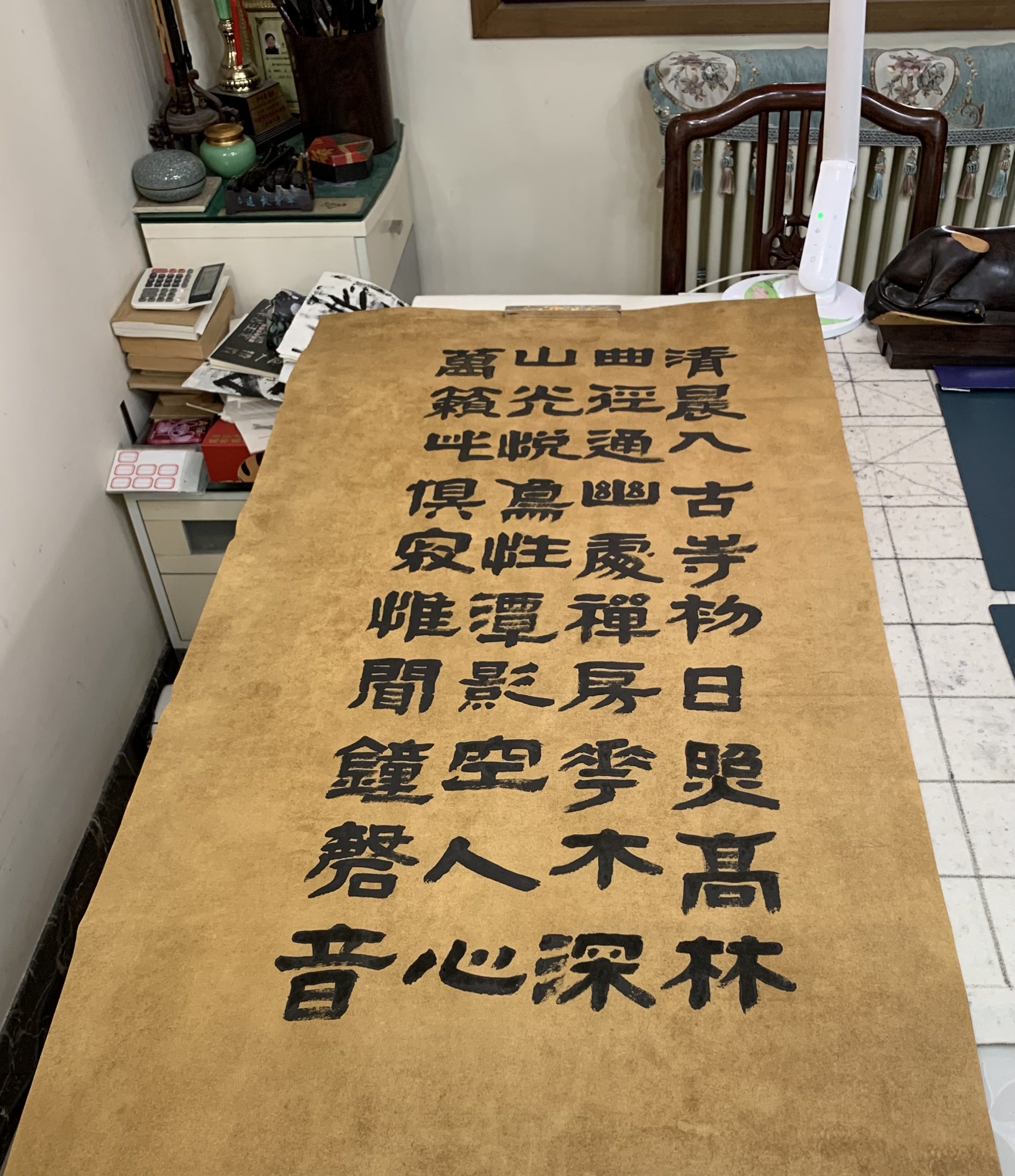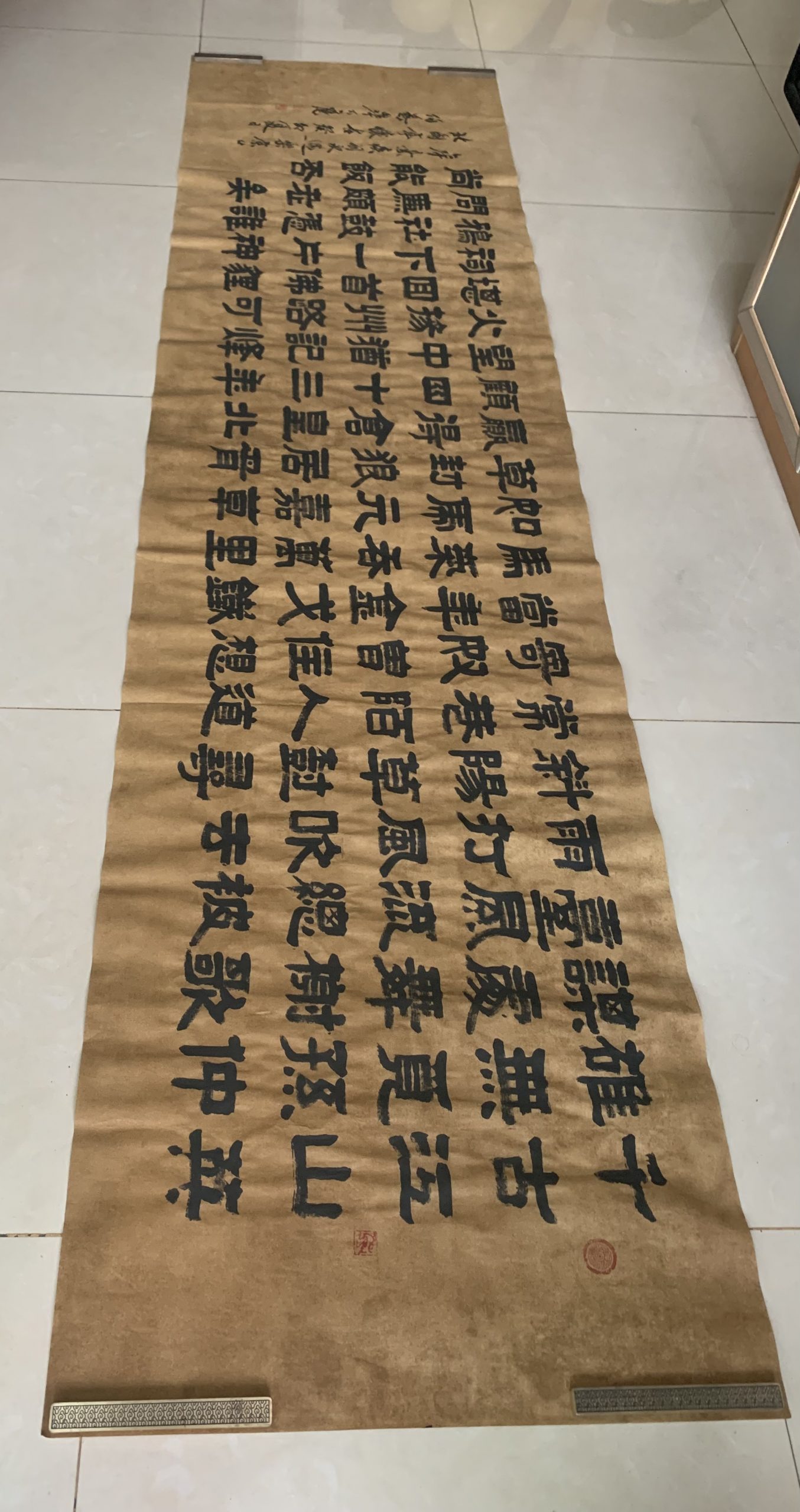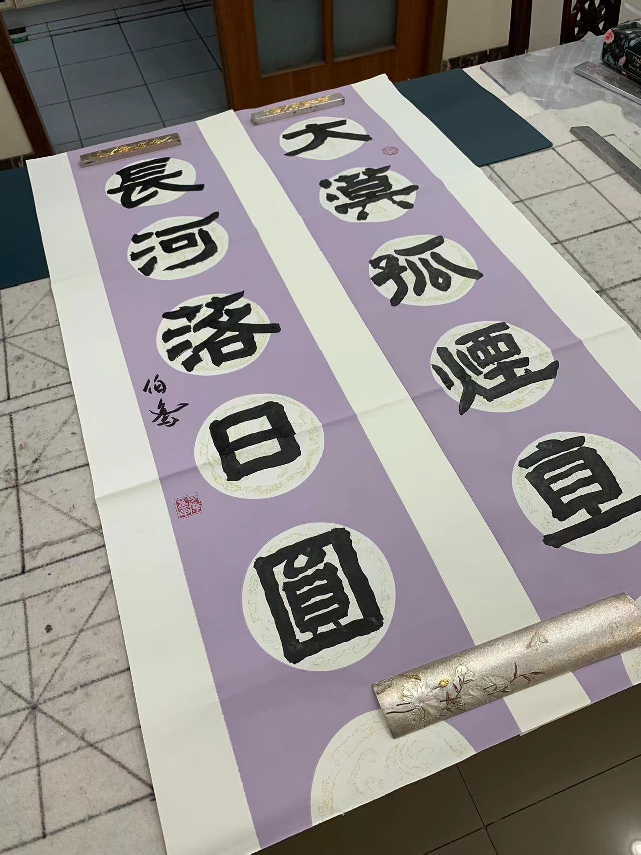 用了四天的功夫,完成古隶书长横幅,纵68厘米,横248厘米。