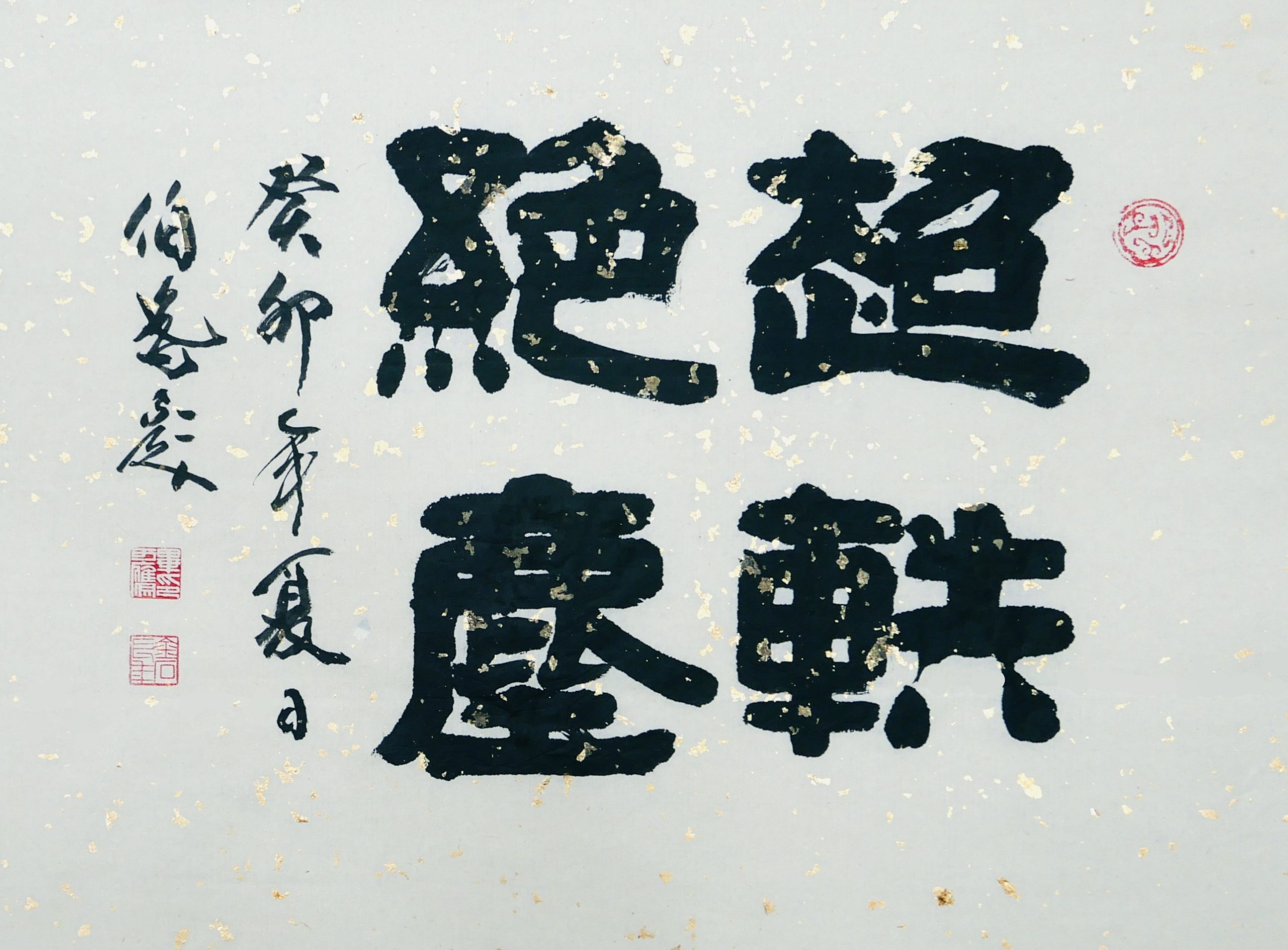 使用陈年老洒金宣纸,落笔容易渗化,结果反而产生一种特别的风味。