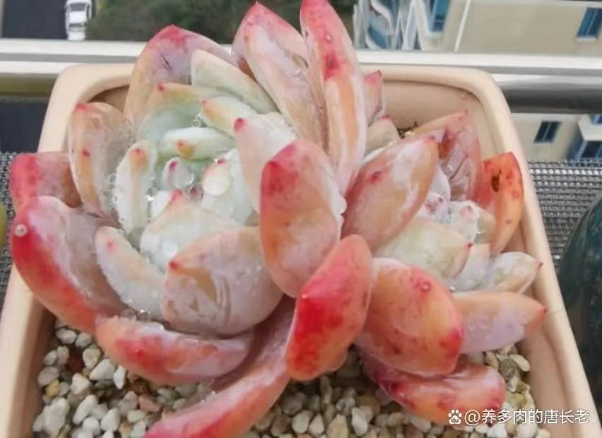 六是雨水较多的地区要注意给多肉遮雨。咱们幅员辽阔且气候差异性很大,比如说有些地方干旱少雨,有些地方则一个月有一半的时间都在下雨。而对于雨水特别多的地区,我们养多肉就要勤快一点——建议下雨时间较长或者在盆土本身较为潮湿的情况下遇到下雨要及时遮雨,要不然多肉既容易徒长,又容易出现叶片化水和烂根黑腐等状况。