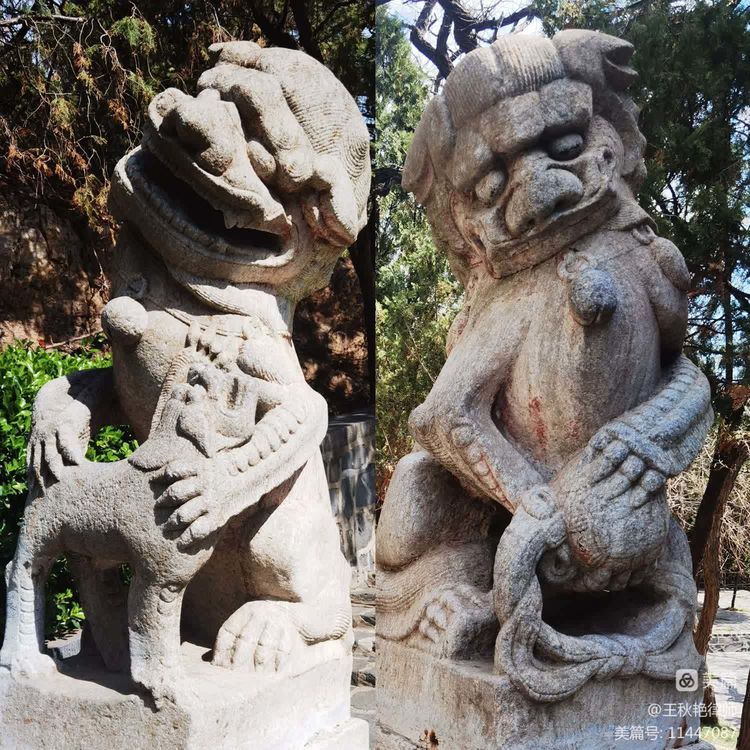 狮子一家三口在路的两侧守候。狮子妈妈怀里搂着小狮子,开心地咧着大嘴,所有的牙都露出来了。狮子爸爸则眼睛低垂,自顾自地把玩着手里的绣球。用P图技术让一家三口来了个合影,咱还是很善良的吧?