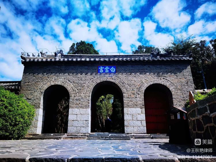看到“白云宫”三个字,就想起了陶弘景的诗句:“山中何所有,岭上多白云,只可自怡悦,不堪持赠君”。抬头看,确实是湛蓝的天,大朵大朵游移的白云,倒也应景的很。