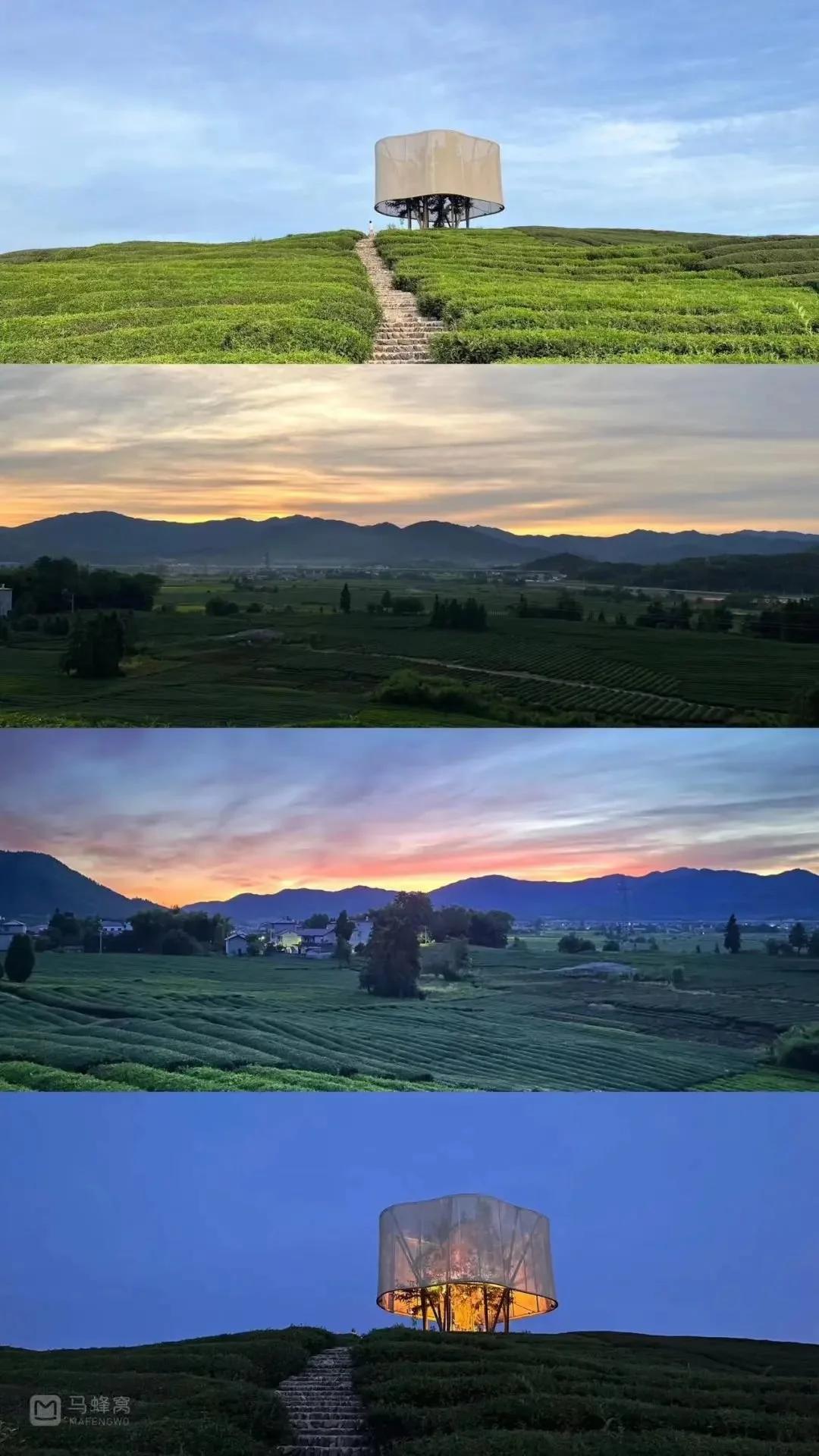 位于茶田山上的「大地之灯」是艺术家马岩松的装置作品。每晚亮灯之后,犹如在远山上漂浮的一座灯塔。