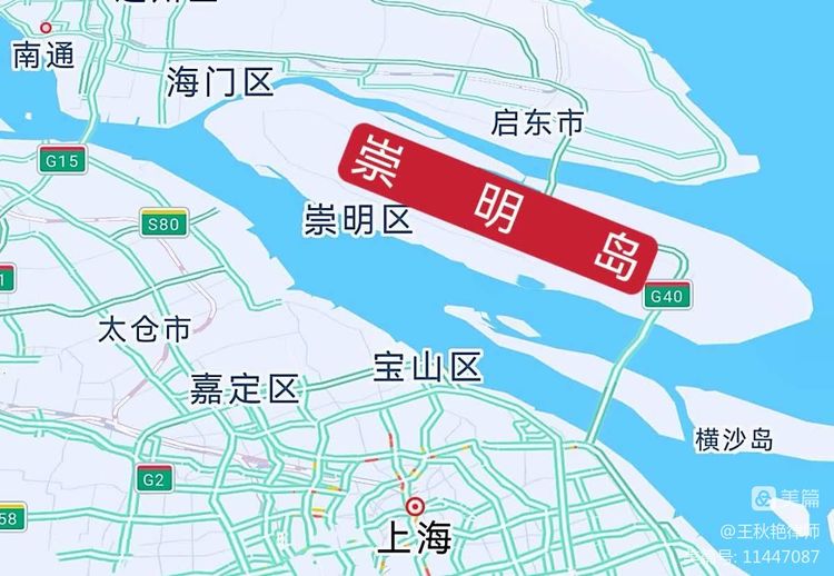 崇明岛大部分属上海市崇明区,小部分属于江苏省南通市启东市启隆镇和南通市海门区海永镇,位于崇明岛北端。阅读这些资料的时候我还在想:现在长江口的河沙还在逐年淤积,万一有一天和江苏南通联为一体,那时候就不好再叫“岛”了吧?