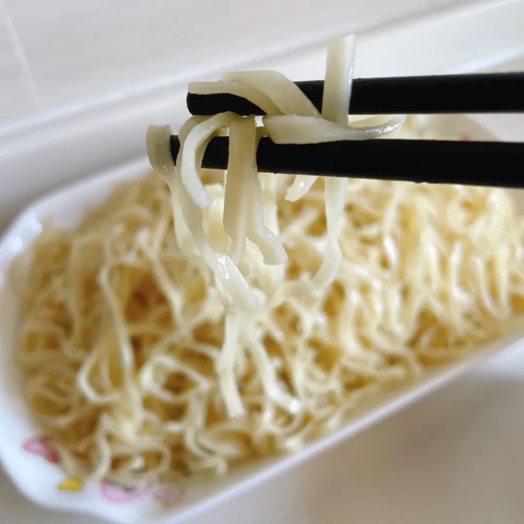面条捞出锅放在漏水盆或者洞洞比较大的筲箕里稍微沥下水,然后马上过冷水或者冰水降温(这样热胀冷缩的面条更筋道。可以用厨房过滤冷直饮水冲凉30秒左右降温的,降温后再次沥干水分)。