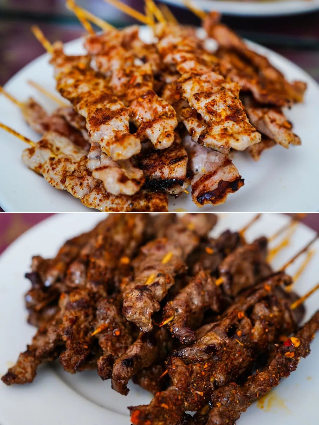 烧烤上的小肉串、烤肉皮、