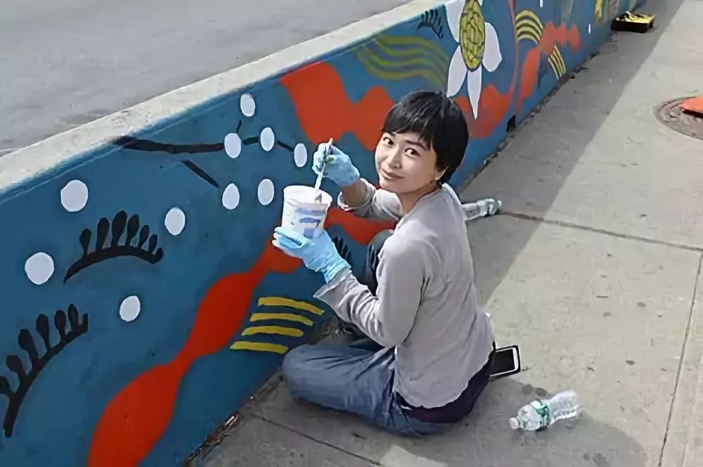 美化社区的墙壁。