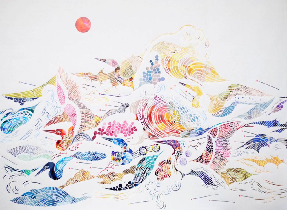 她创作了一幅鸟类迁徙。