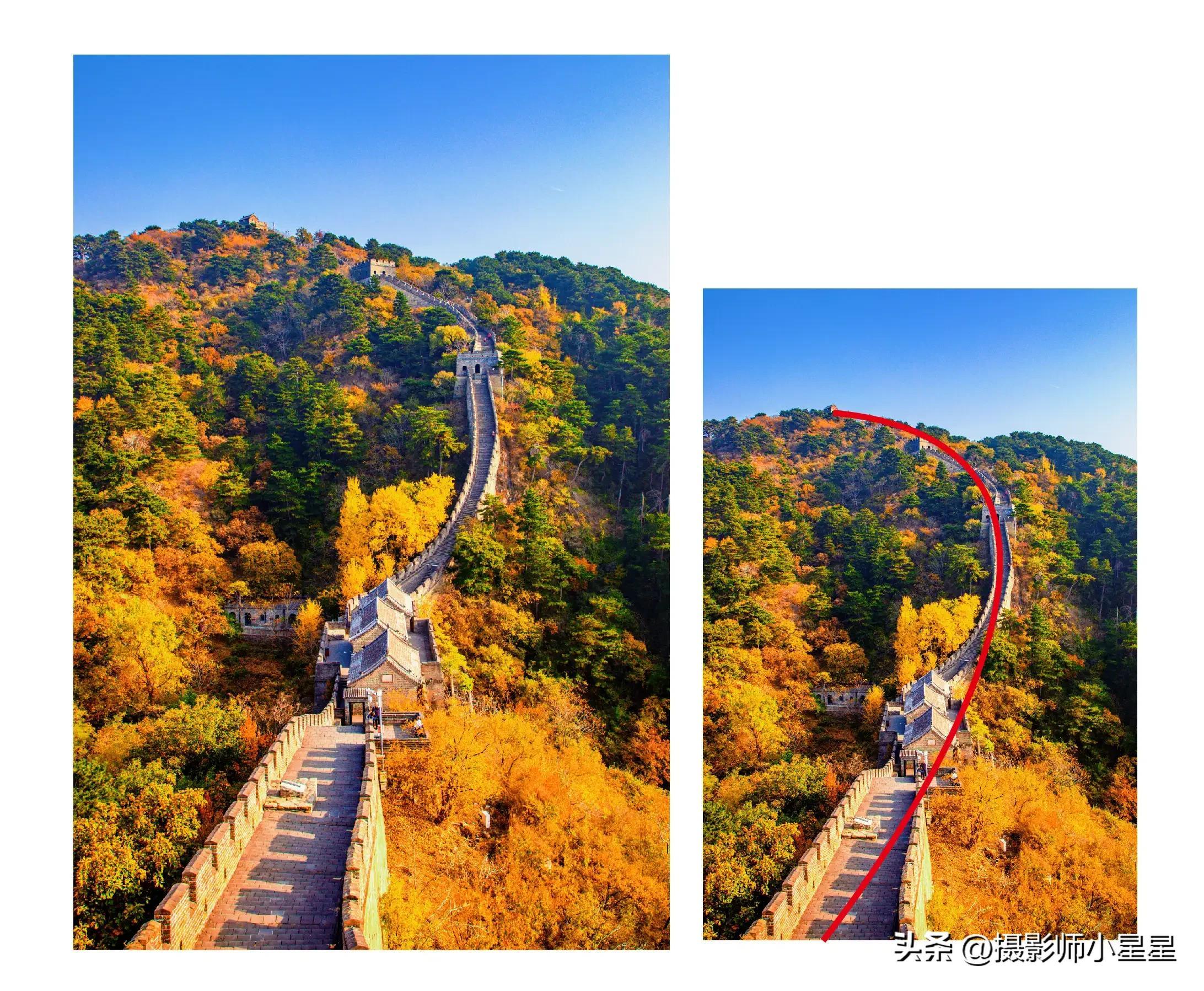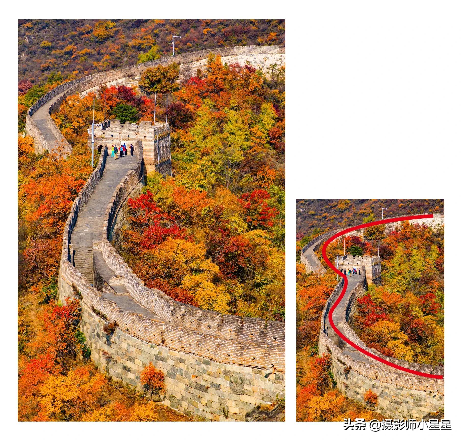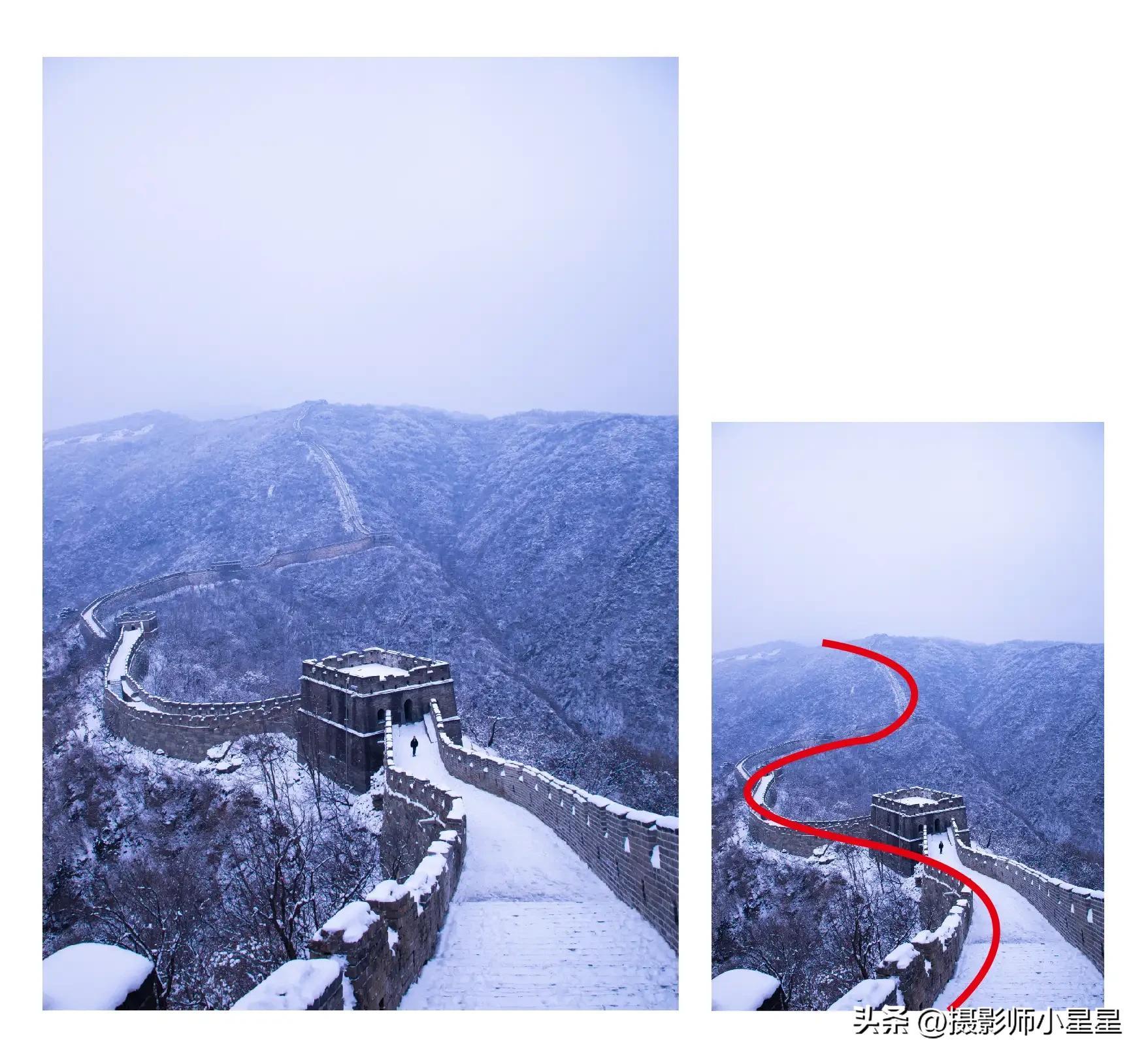 我们可以用S 形构图或c形构图来展现建筑的美感,当画面形成曲线构图,构图更加简洁,也更具视觉美感。
