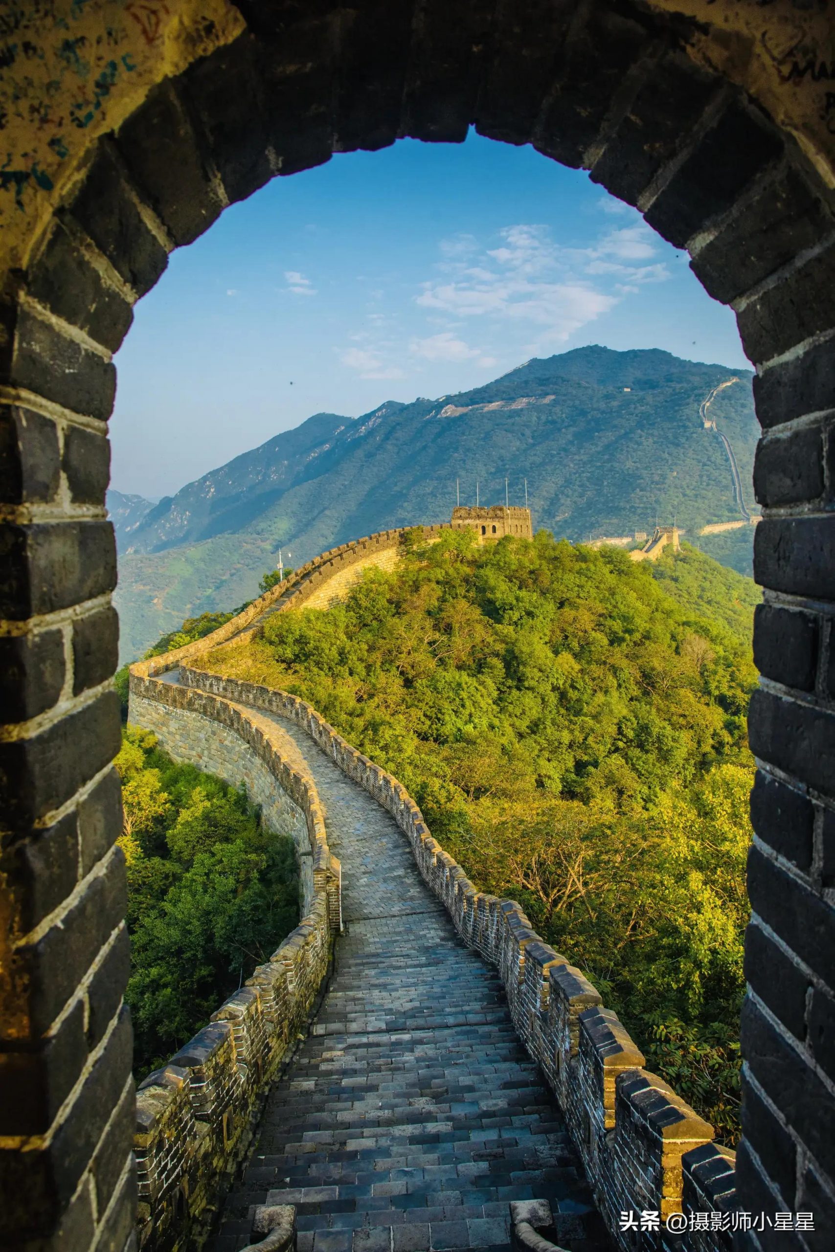 你看,当我们以门框、门洞作为框架,能够很好地突出建筑,借助近景中具有特色的框形成框架式构图,能够丰富了画面的层次,通过简洁的画面突出框内主体建筑。
