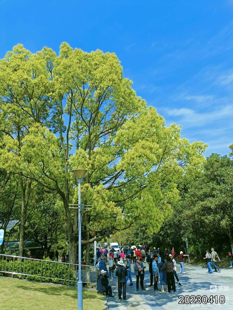 与第一次来,时光流逝整四年,变化却是日新月异。记得第一次来,车可以开至岭下很近的地方,大家步行即可以登岭观览。这次却是在一个离得较远的停车场下车,又走了一段路才来到岭下,而且登岭前还得通过严格的安检。但令人欣喜的是这次竟然还可以乘电斜梯登岭,而且“今日不与往昔同,岭上光景一时新”,梯两侧还逐次栽种了许多不知名的树,树上花开五彩斑烂,顿感心旷神怡,记得当时录过一段视频,但可惜丢失了。