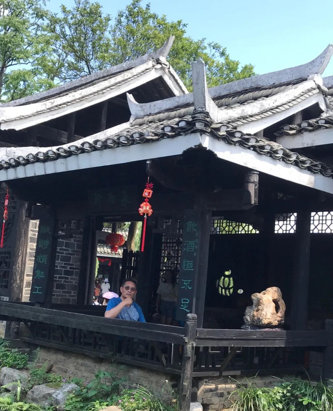 我们的宸宸“小导游”背后的连廊,据说是明清时候的古迹,估计也夸大其辞了。她始终勤快地举着旗子,蹦蹦跳跳跟着蒋导引领着大家走完每个景点,小脸晒得通红,也没叫一声累。后来蒋导说奖励她一半旅游费,只收她半价;我后悔莫及,早知道这样,我就背着蒋导游玩了,怎么着也能奖励我一杯酒吧!