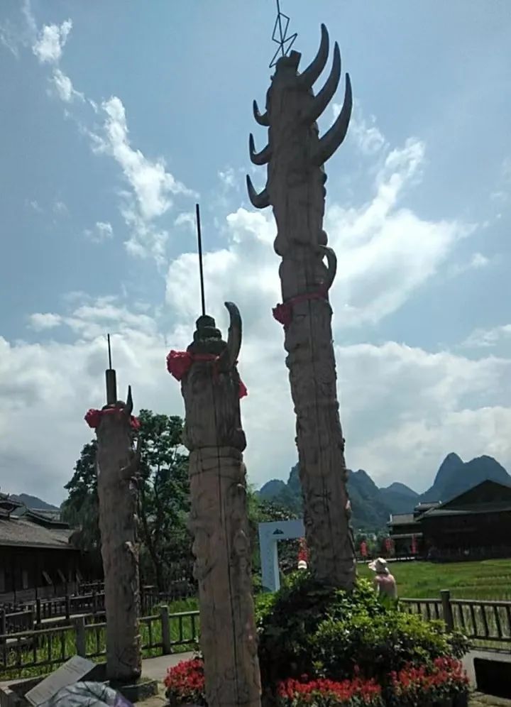 以前这里主要居住地黑衣壮族,他们视牛和青蛙为吉祥物,牛是勤劳的象征,青蛙除害虫,有这二种动物,就可以保证村民衣食无忧,怡享天年,久而久之就以牛头和青蛙为图腾。