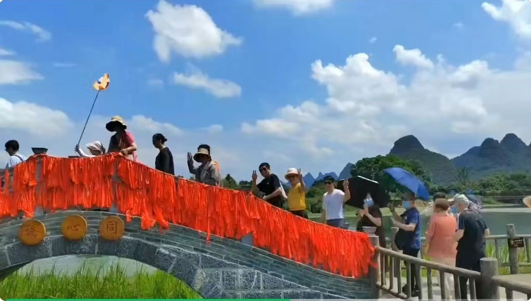 出了迎宾阁,蒋导建议每个家庭都牵手走过“同心桥”,预示生活美满、夫妻恩爱,蒋导给我们拍了视频。