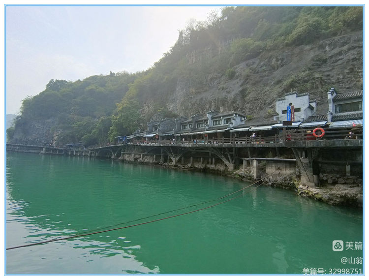 到达景区后,我们的大巴又在山间弯路上绕了约半小时,才来到一处码头,已是上午11时半也。简单午餐后,我们在这里乘坐游船徜徉又约半不时上到对岸,开始了我们正式的“三峡人家”“拜访”。