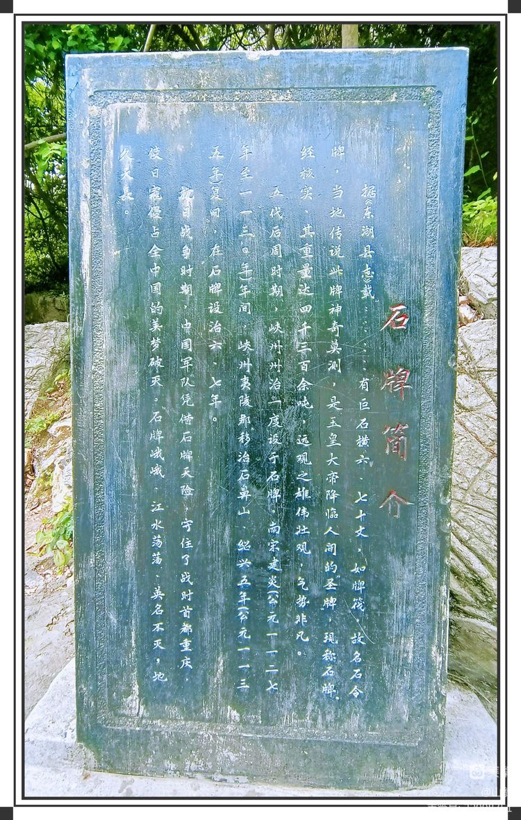 据《东湖县志》载:“有巨石横六、七十丈,如牌筏,故名石令牌”。当地传说此牌神奇莫测,是玉皇大帝降临人间的“圣牌”,现称石牌。