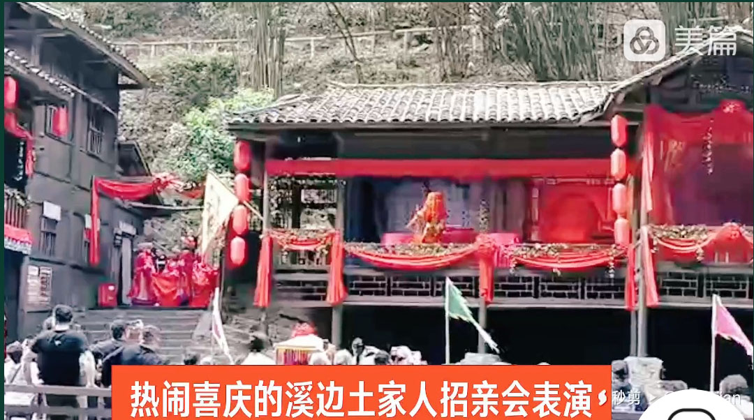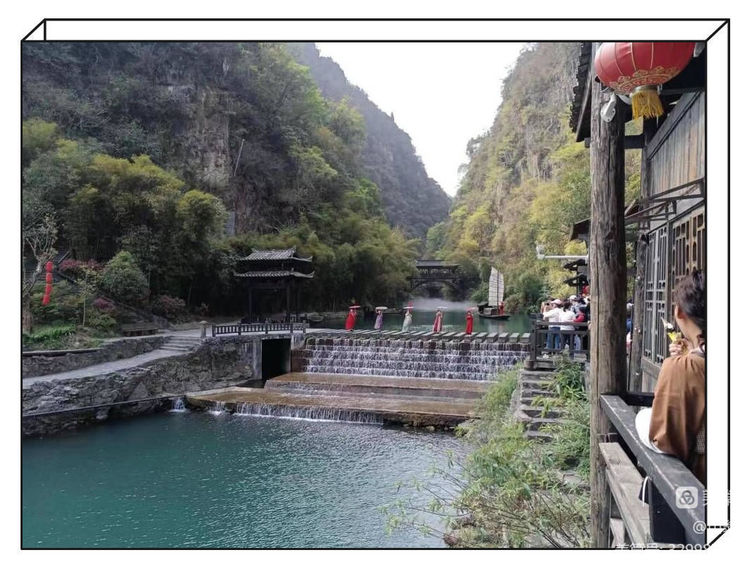 顺着山道,我们时而登高,时而探级,时而穿洞,时而豁然,还幸运地让电梯送了一段,但却费去30元人民币。水上人家、溪边人家、山上人家、抗战石牌、巴王寨等被我们一一涉足而过,还欣赏了小一场土家小节目表演。都是美不胜收。水上人家的土家小哥幺妹、靓哥的歌声,声声甛美悦耳,溪边人家的山间小溪,竹排点点,箫声阵阵。山上人家吊楼高悬,只可远观,不能近视。抗战石牌沧桑可见,历史见证。巴王寨里富丽堂皇,王气犹存,土族文化,可见一斑。
