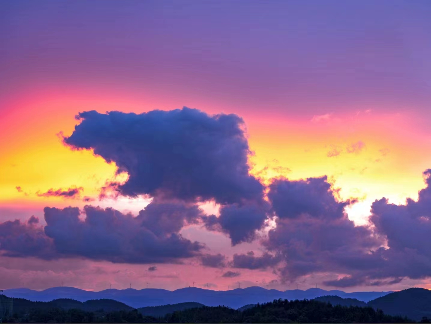 谁在天边行走,不小心踩倒了七彩盒,渲染出这般绚丽多彩的颜色?落日归山海,山海藏深意,暖色的天际线,是太阳对白天最后的眷恋,如果你也刚好看到了晚霞,就当作是我们见面了,因为上面有你的影子…