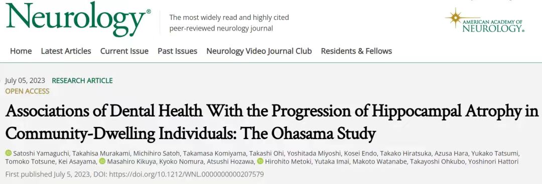 2023年7月5日,日本东北大学的研究人员在《神经病学》(Neurology)上发表了一篇关于牙齿脱落、牙周疾病与海马体萎缩相关的研究。