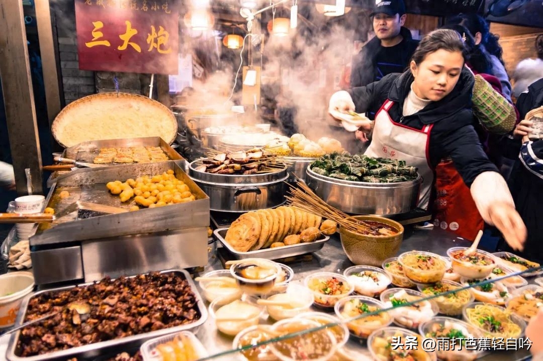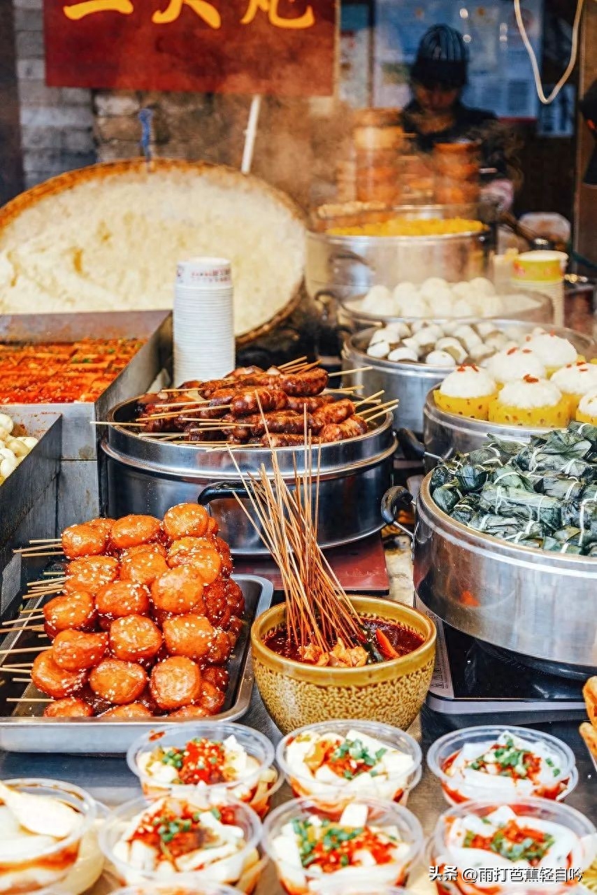 冷串串、油炸串串、麻辣烫、跷脚牛肉、甜皮鸭、西坝豆腐、狼牙土豆、叶儿粑、三鲜冰粉、九妹凤爪、乐山豆腐脑、排骨面……数都数不过来。