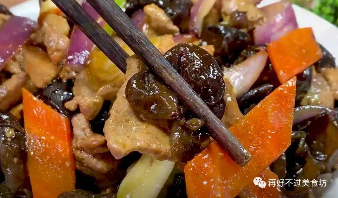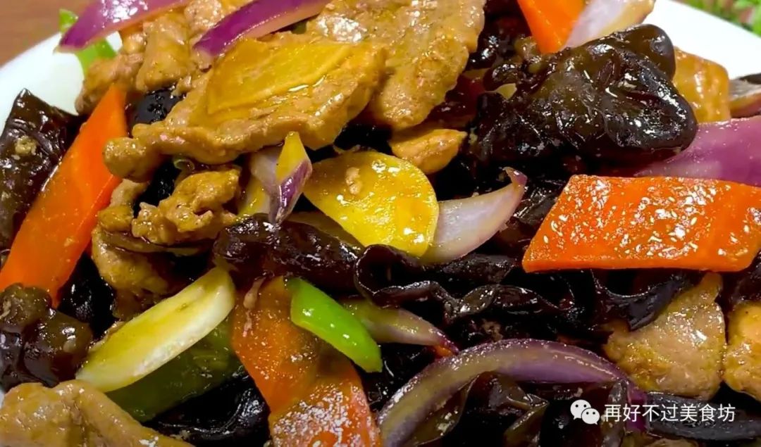主要食材:黑木耳、猪里脊、鸡蛋清、葱姜蒜、胡萝卜、青辣椒、紫色洋葱