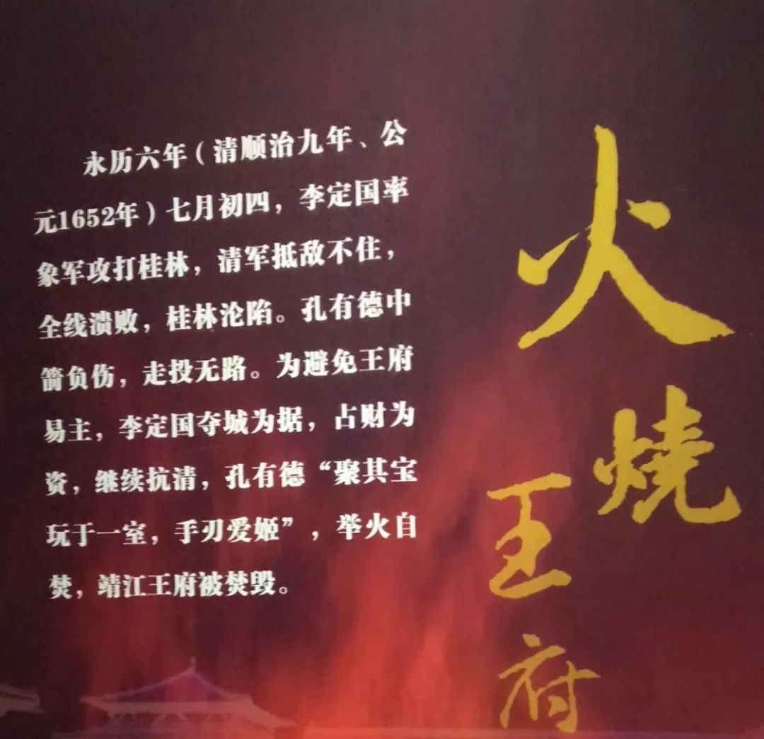 到了明末因政权纷争,王府曾被焚毁,馆内展示着被焚毁经历的记载;