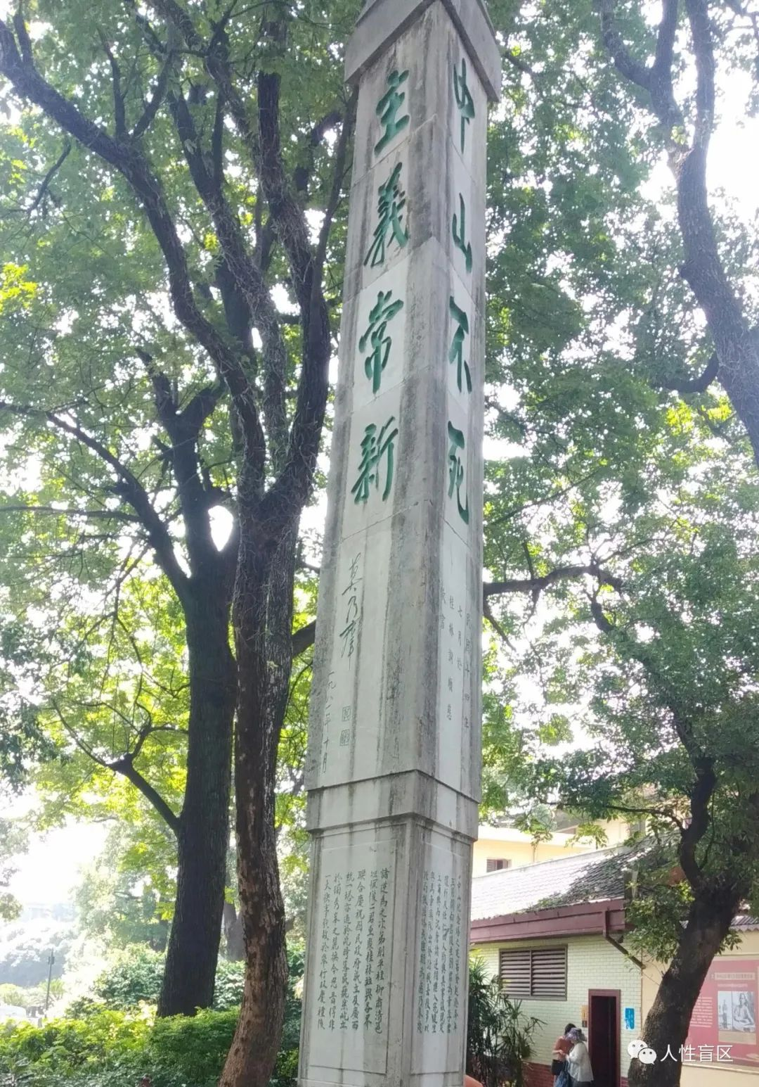 侧面树荫下矗立的“中山碑”,镌刻着中山先生的三明主义思想理论,校园里处处凸显着文化氛围,也彰显着这块宝地始终处于历史的风口浪尖上。